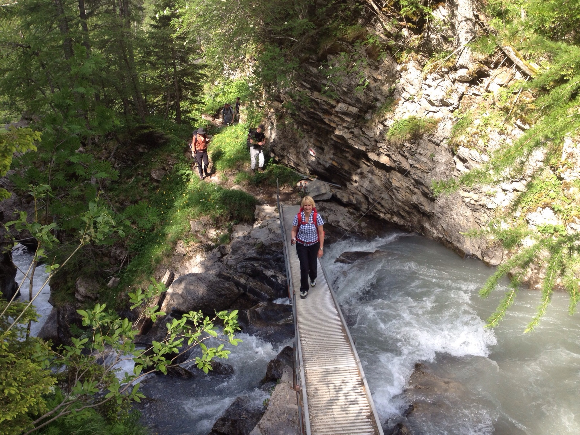 Tatsächlich sollten wir die „Expedition 50“ dann zu zwölft unternehmen. Am späten Freitagnachmittag setzt sich die Karawane in Bewegung. Die 600Hm im Kaltstart zur Geltenhütte haben es in sich. Der Weg ist zeitweise sehr steil und fordert Einiges ab, aber die gebotene Abwechslung durch Wasserfälle, Bäche, Tiefblicke und Alpenblumen in diesem herrlichen Naturschutzgebiet ist es mehr als wert. Auch die letzten Wolken der langen Regenperiode verziehen sich, und kurz vor dem Eindunkeln zeigt sich der zu erobernde Gipfel dann zum ersten Mal.