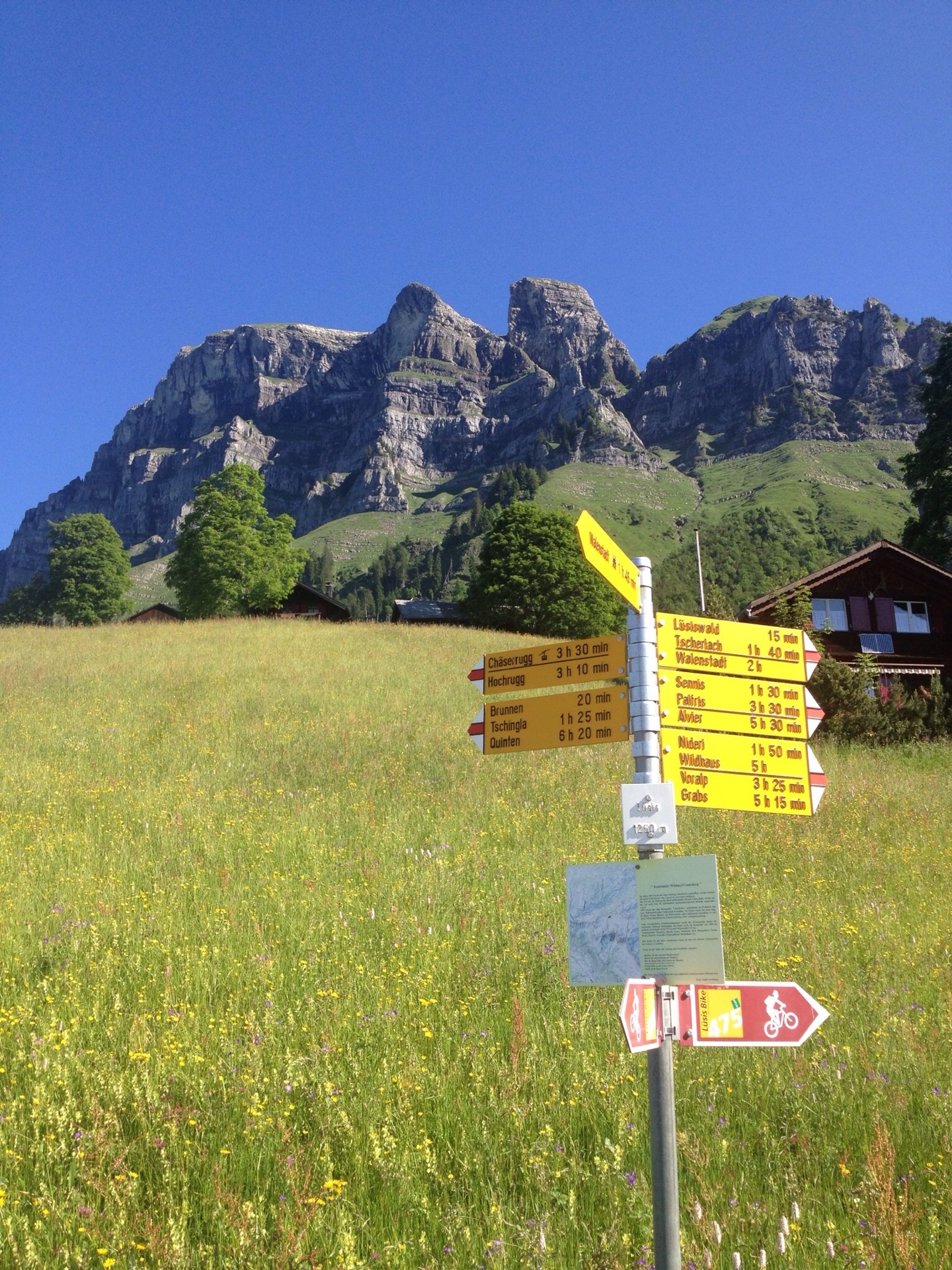 Wer dem Walensee entlang fährt und dabei die mächtige Churfirstenreihe bestaunt, kann sich kaum vorstellen, dass es drei Möglichkeiten gibt diese Wände ohne Kletterausrüstung zu überwinden. Zwei davon sind von Lüsis aus zu erreichen, einem kleinen Nest oberhalb von Walenstadt, das leider nur mit dem Auto zu erreichen ist. Beide führen zum Hinderrugg und erlauben deshalb eine Rundwanderung mit kulinarischem Boxenstopp auf dem Chäserrugg (2262), der vom Toggenburg aus bequem mit der Luftseilbahn erreichbar ist.