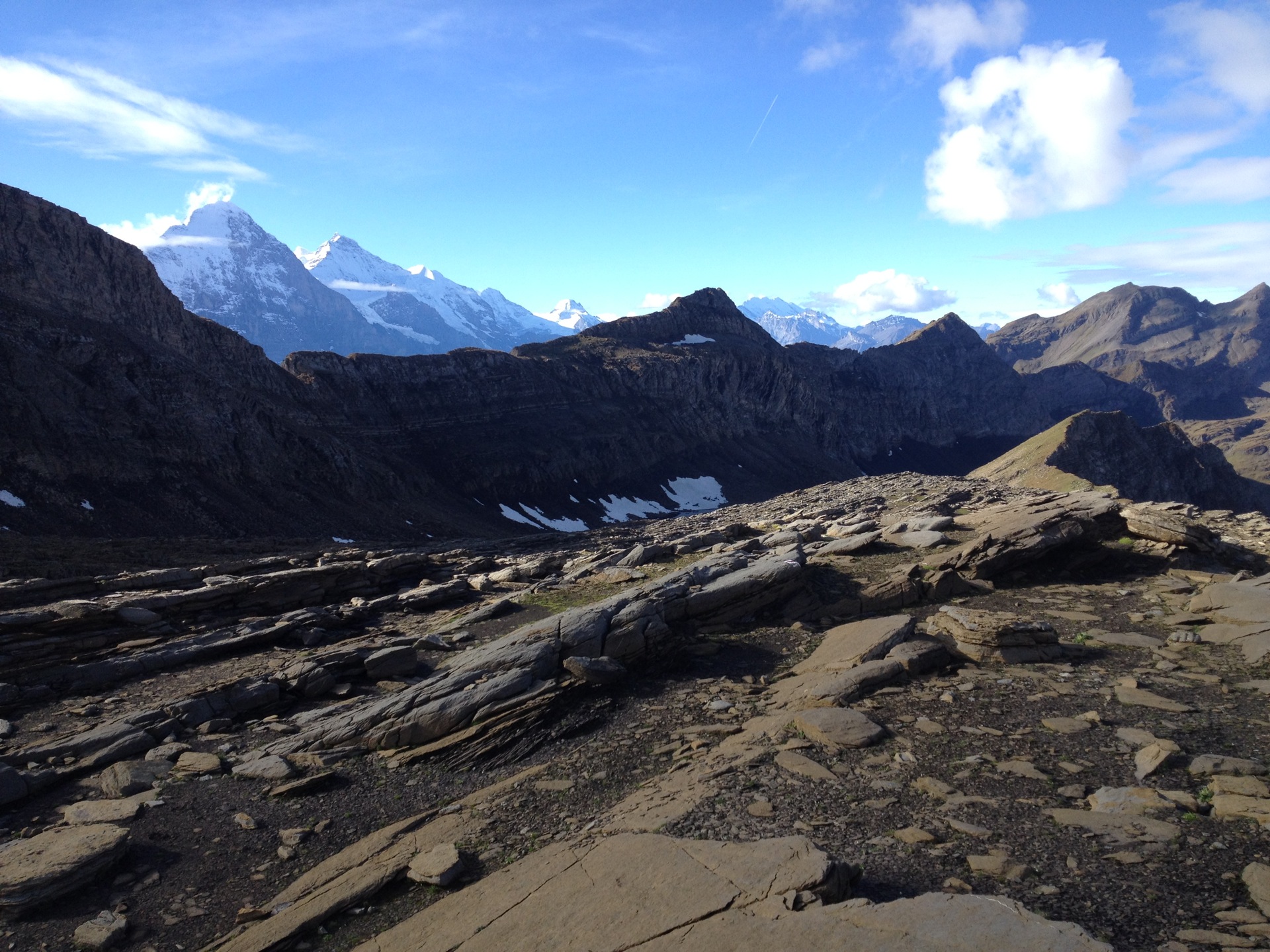 Der Blick in das Susten/Grimselgebiet, vorne die Reste des Blaugletschers