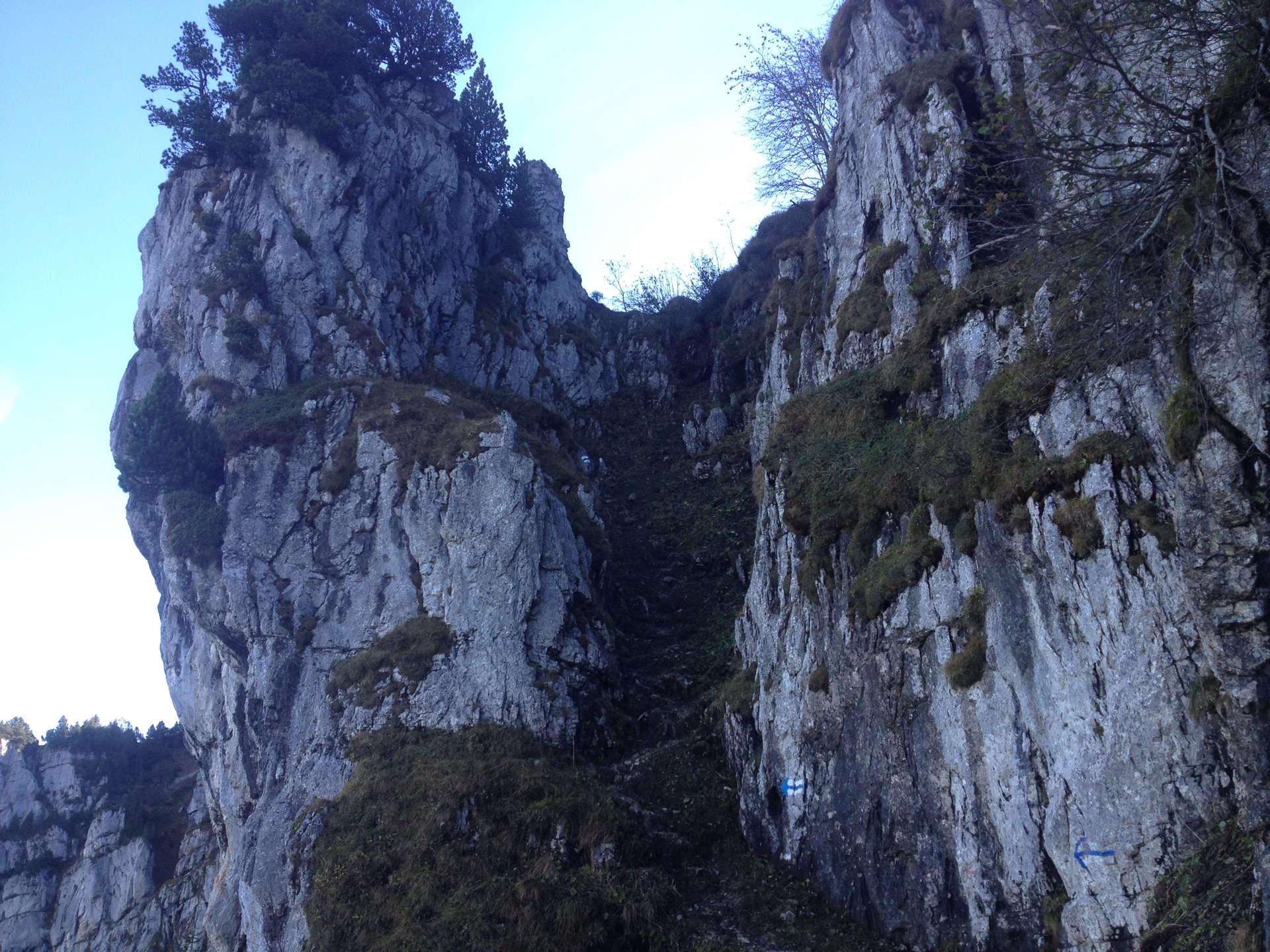 Im kleinen Dorfladen von Morschach lasse ich mich mit frisch gestrichenen Sandwiches ausrüsten (wo gibt es das noch?) und verspreche der charmanten Ladenbesitzerin, den frisch gebackenen Apfelkuchen auf dem Rückweg zu probieren. Das Auto lasse ich auf dem schattig-kalten Parkplatz der Stossbahn zurück, dann geht’s los. Der Pfad steigt schnell an, bald habe ich es wohlig warm. Ein paar Vögel pfeiffen mir zur Begrüssung zu, die Alpweiden sind verlassen.