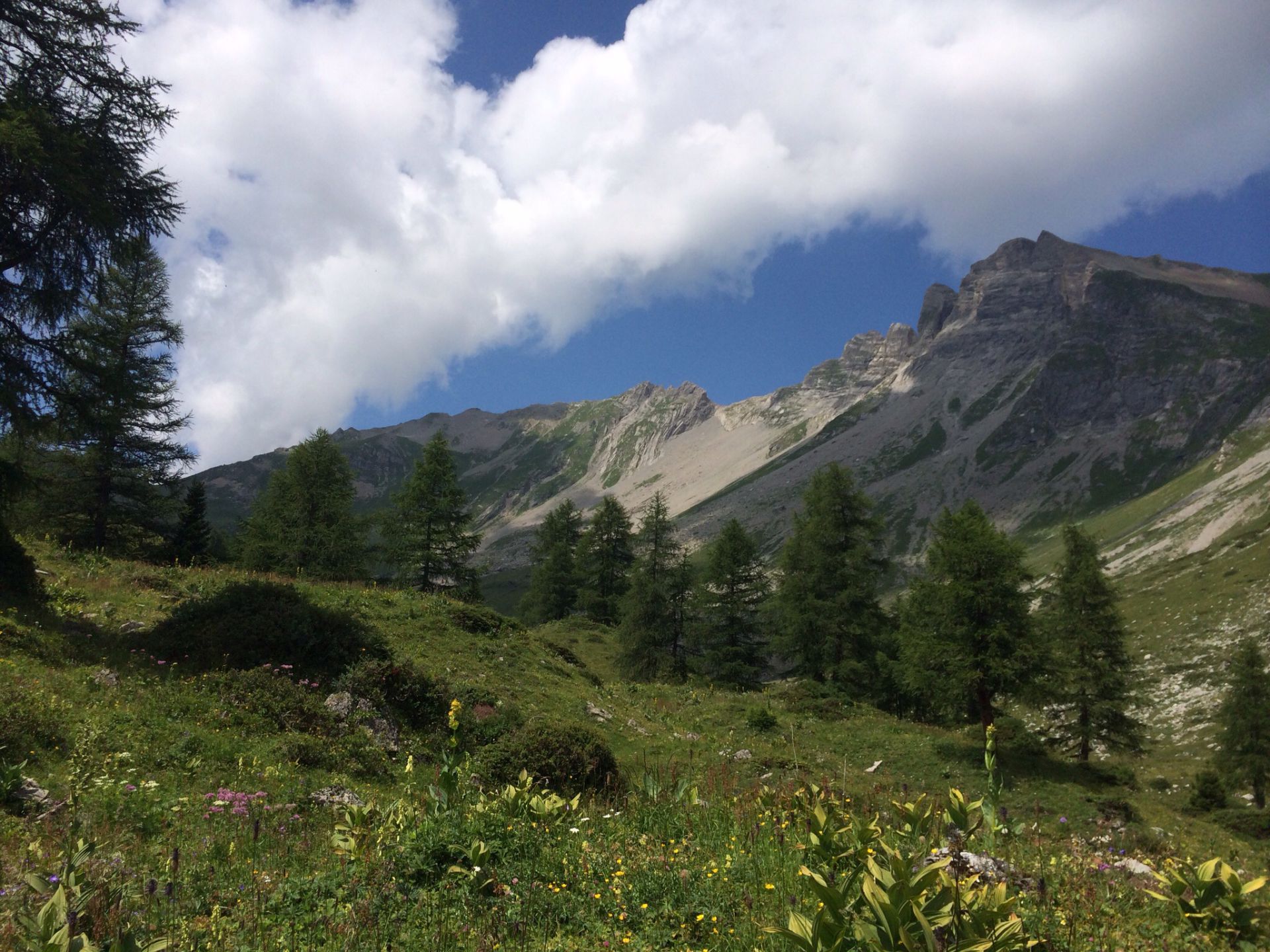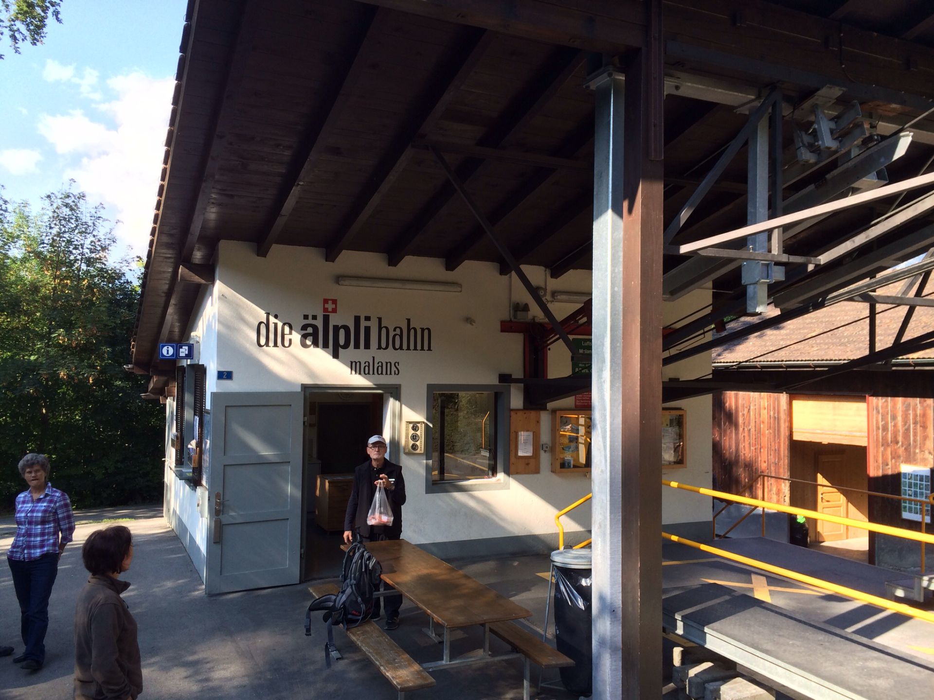 Kurz vor neun Uhr entsteige ich dem Bus an der Talstation der Alpelibahn in Malans. Natürlich habe ich nicht daran gedacht, einen Platz in der kleinen Bahn zu reservieren: „10.45“, brummt der Bähnler, „16.30 wieder runter“. „No way“ sage ich, aber er hat kein Gehör für mich. Der Vater von drei Kindern hinter mir aber schon: „Wir haben reserviert, nehmen Sie meinen Sohn auf den Schoss, dann haben Sie Platz!“. Ich nehme das Angebot dankend an. 30 Minuten später schwebe ich mit der ehemaligen Militärtransportbahn in die Höhe. Der Junge freut sich über ein kleines Taschengeld von mir.