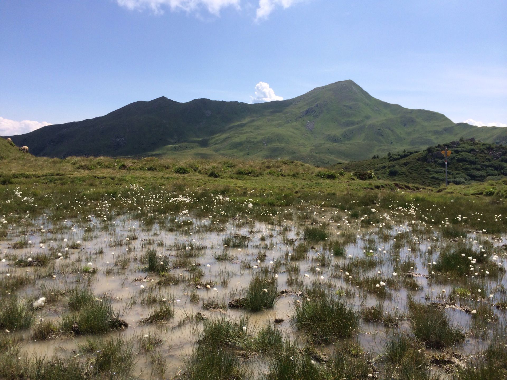 Der Rückweg führt wieder zurück in das hübsche Wandergebiet rund um den Vilan. Diesmal wähle ich die etwas längere Variante, um möglichst lange auf der Rätikon-Seite bleiben zu können. Diese Kalkwände sind zwar keine Shooting-Stars – aber eindrücklich sind sie allemal. Der Weg ist auch deshalb spannend, weil er durch sumpfiges Gebiet führt. Nicht wegen der nassen Füsse, die das gibt, sondern wegen der auffälligen, hochmoortypischen Flora. Ein echtes Genusswandern! Ich verstehe jetzt, warum so viele ältere Jahrgänge hier herumwalzen.