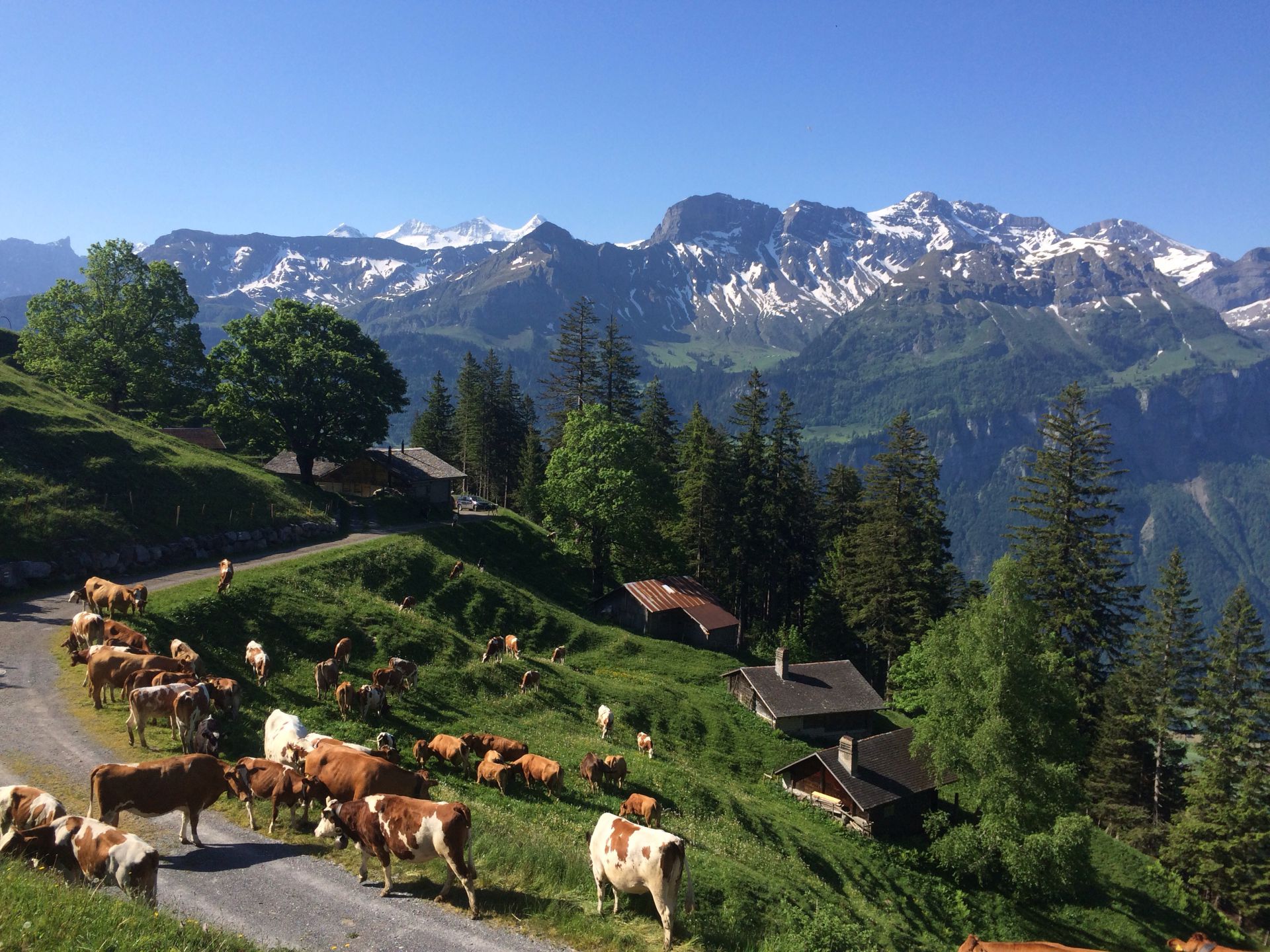 Oben herrscht Hochbetrieb: Unzählige Kühe sind aus dem Unterland eingetroffen, die ahnungslosen Rindli bewegen sich noch unsicher auf den unebenen Böden. Ein paar hochschwangere Kühe schauen uns derweilen bedächtig zu … und überall sind Fliegen. Die Bauern machen ihre Alphütten und Ställe für den Sommer bereit. Sehr idyllisch. Nur die F/A 18 der Fliegerstaffel 11 vom weit unten im Tal gelegenen Militärflugplatz Meiringen fliegen hier manchmal durch die Stube.