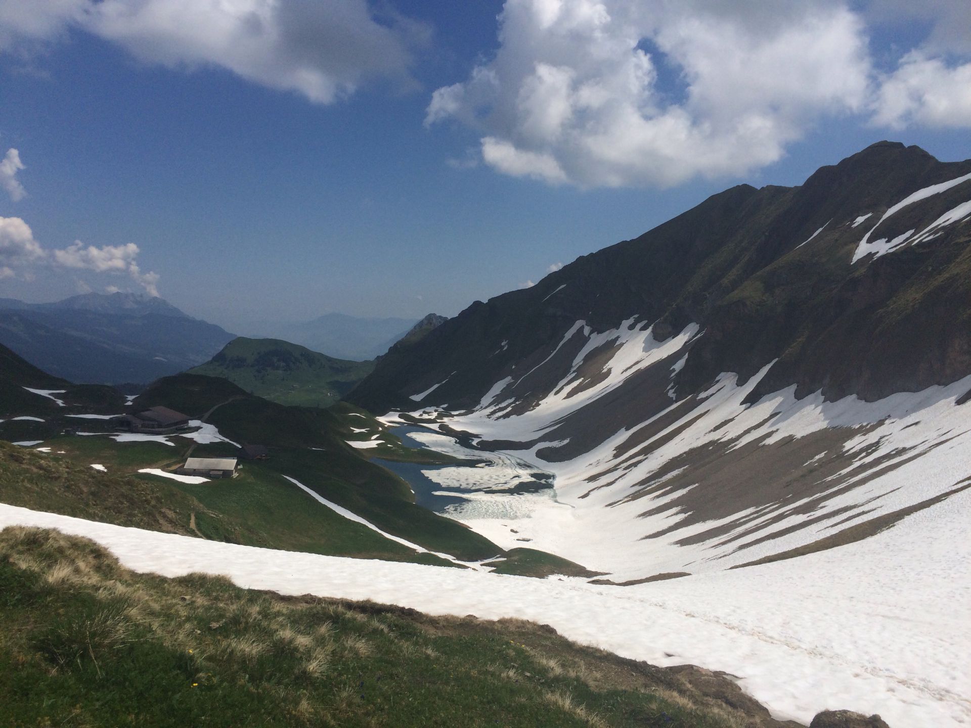 Der Eisee wird seinem Namen (noch) gerecht (weit hinten Pilatus, Stanserhorn und Arvigrat)