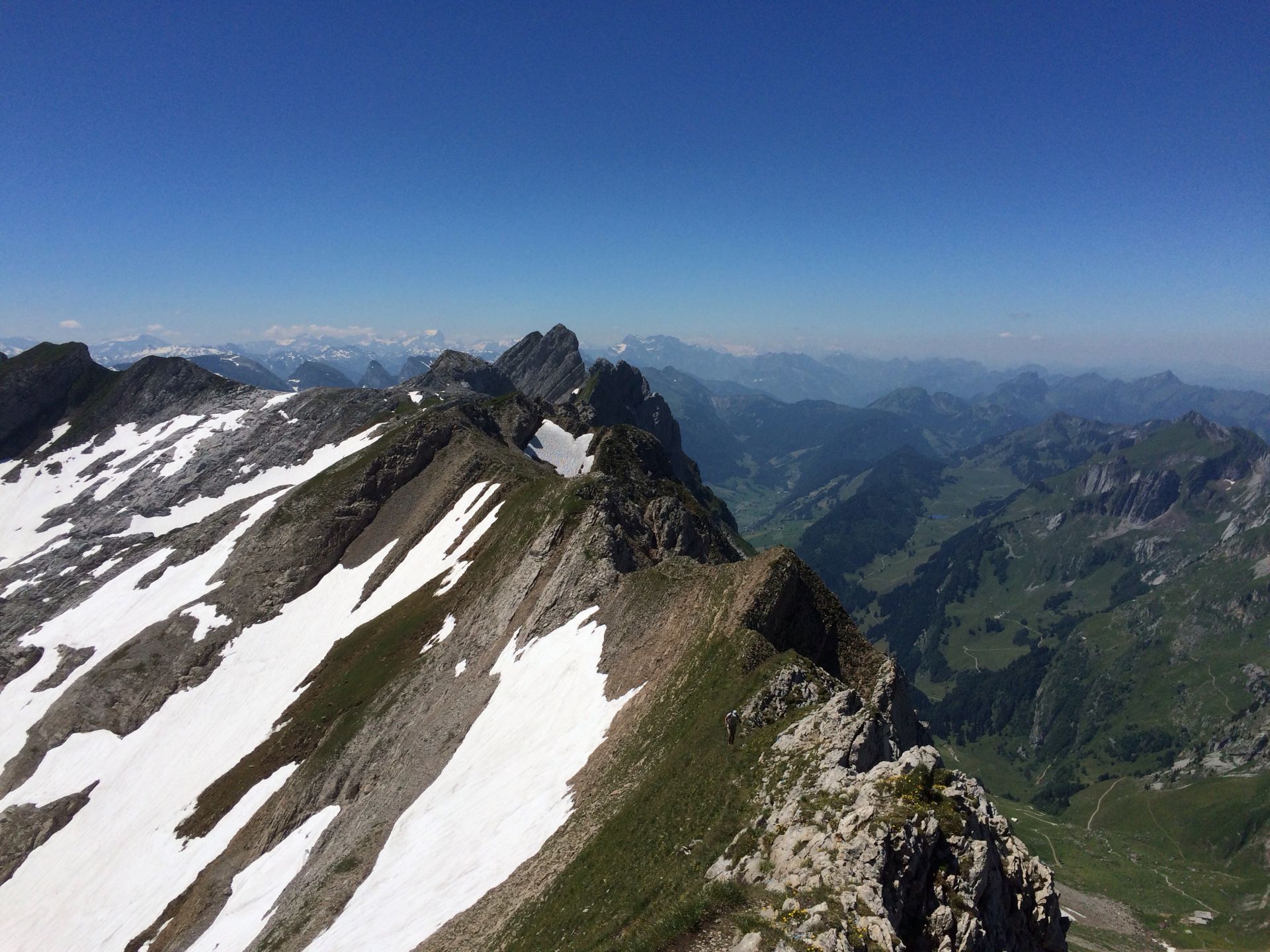 Geschafft – der Blick zurück vom Säntis zum Jöchli, Nadliger-Grat, Altmann und Lisengrat