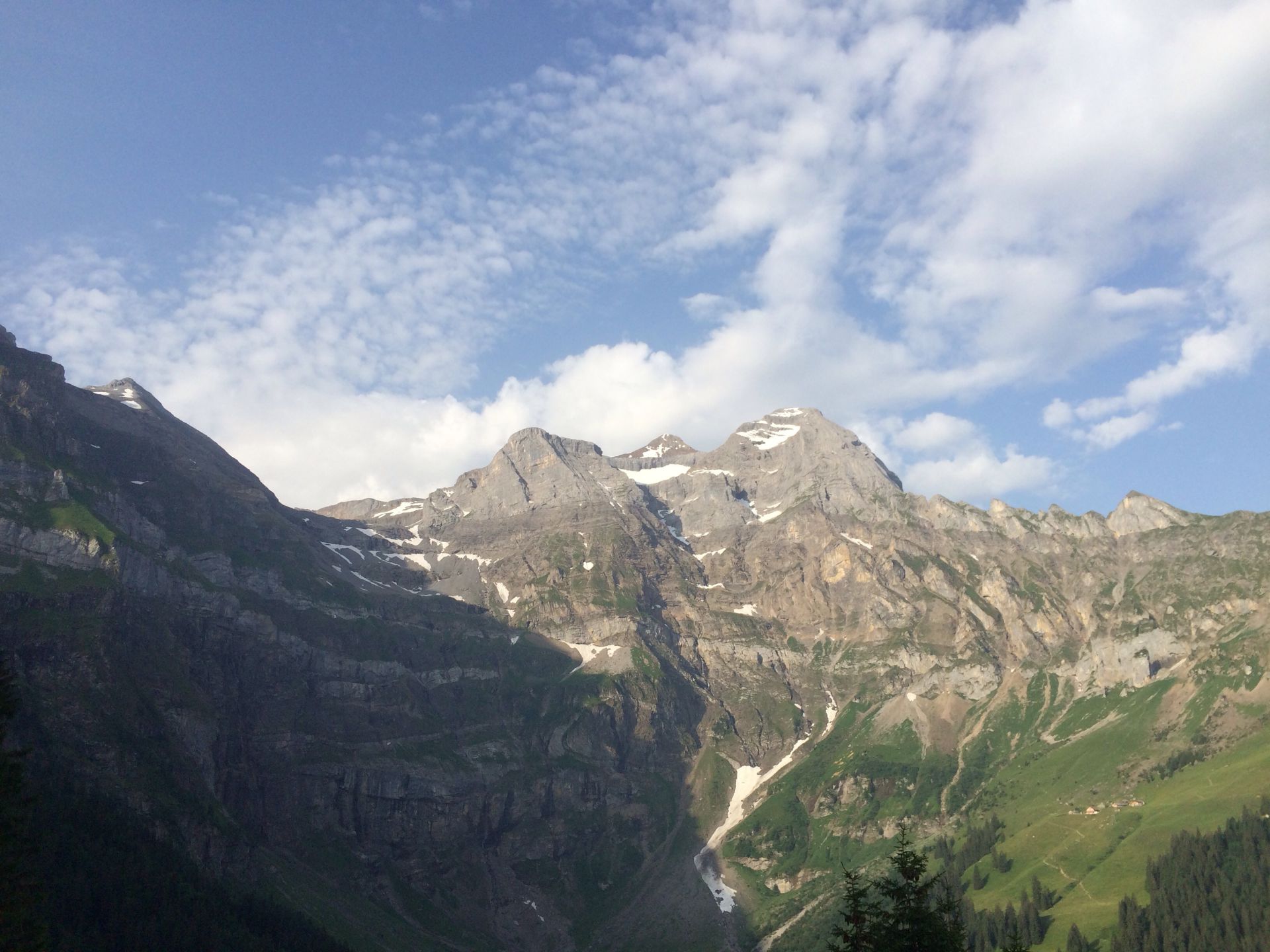 Der Pfad folgt nun dem Gratrücken, zunächst durch offenen Wald, dann über Wiesen zum Oberberg. Leider fehlt mir die Zeit für einen Halt in der einladende Bäsebeiz des Schafhirten. Jetzt werden das Grün karger und das Gelände steiniger. Auf 2200m erreiche ich die Kante, an der der gewaltige Tiefblick ins Reusstal wartet – ein abrupter, aufregender Szenenwechsel.