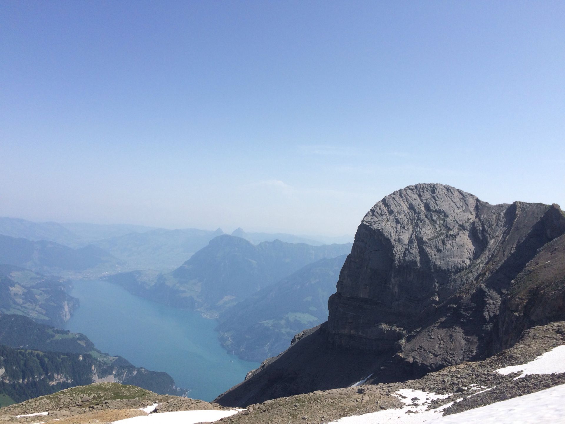 Das Gipfelspektakel ist unbeschreiblich: Der grünblaue Urnersee, die vielen weissen Gipfel, die schauderhaften Abgründe, der hellgraue Fels. Ich atme tief durch und bin dankbar. Dann beisse ich in meinen Apfel und lasse meinen verschwitzten Körper vom kühlenden Bergwind trocknen.