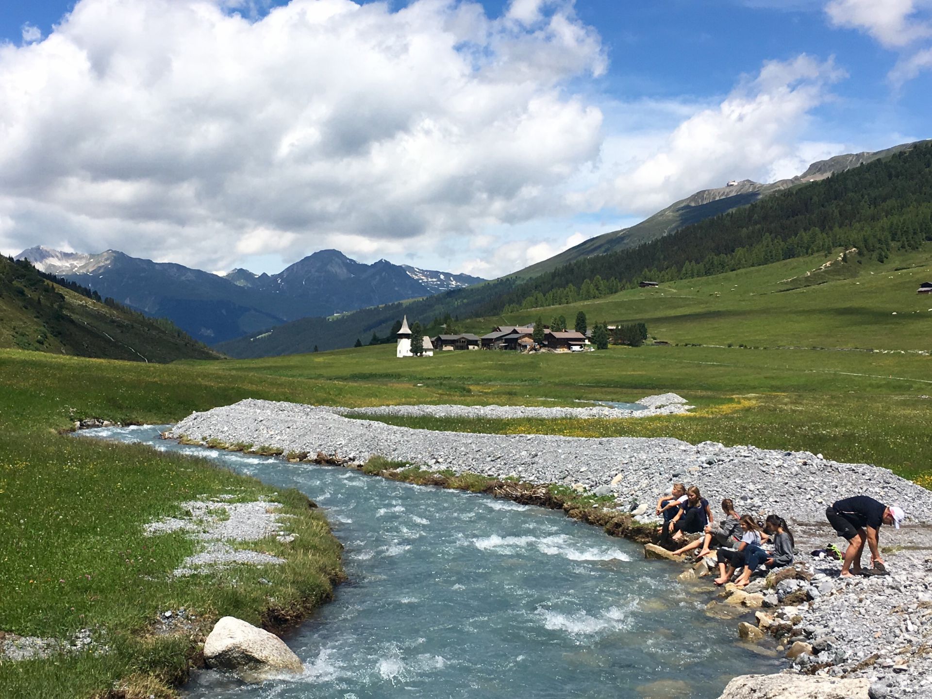 Frisch gestärkt schlendern wir schliesslich über ein Fahrsträsschen das saftiggrüne Tal in Richtung Zivilisation hinunter. Gegen 13 Uhr erreichen wir Sertig Sand, wo der kalte Bach die Füsse kühlt, und die Tour sein Ende findet.