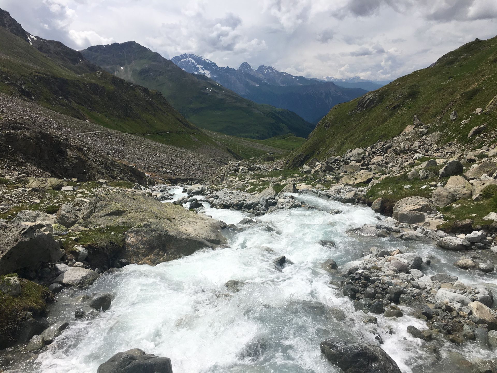 Der Blick in Val da Ravais-ch, zuhinterst der Sertigpass
