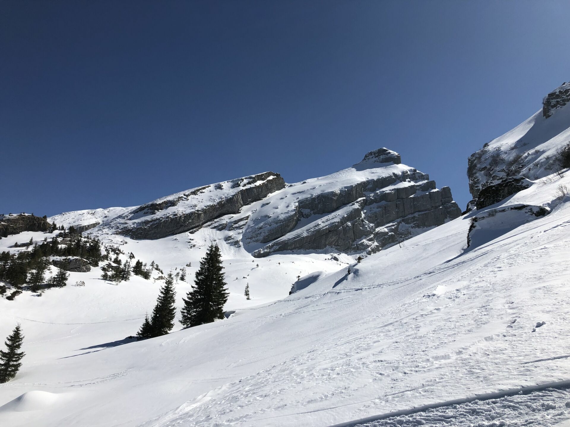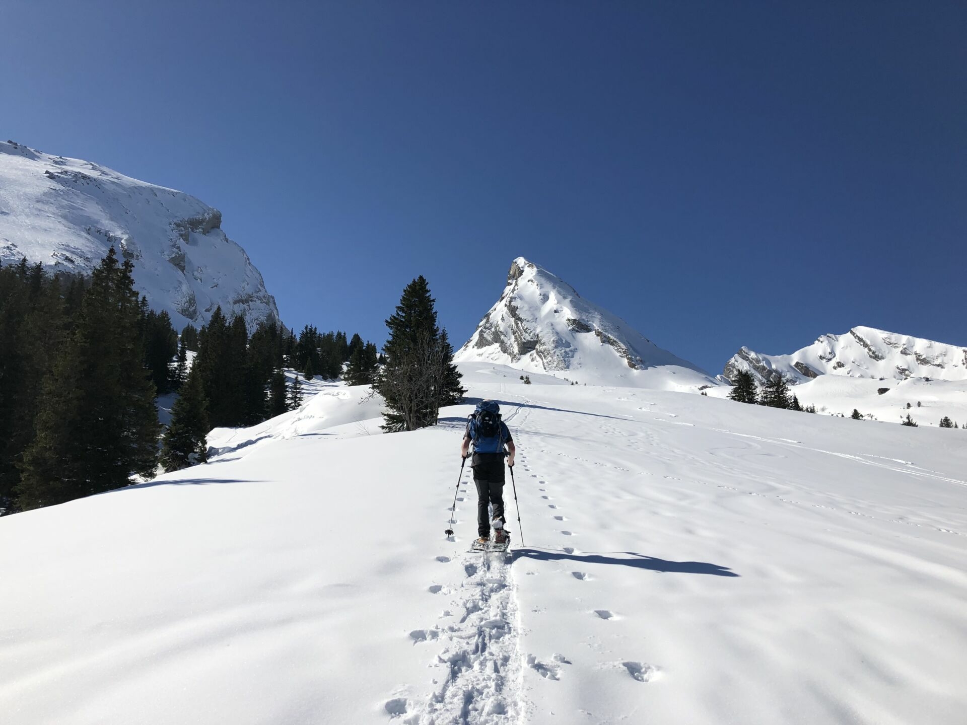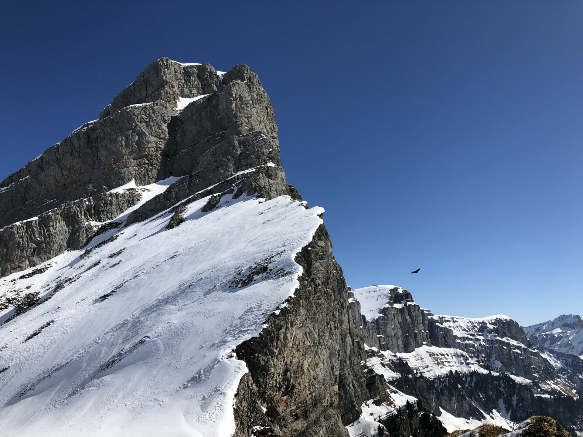 Es ist schon fast April, morgens um Fünf trällert mich das fröhliche Gezirpe der Singvögel aus dem Schlaf. Es erinnert mich freudig daran, dass der Frühling da ist. Trotzdem zieht es mich heute nochmals mit den Schneeschuhen in die Höhe. Sevi meinte nämlich, mir etwas zeigen zu müssen. Ich folge seinem Ruf zur Alp Sellamatt im Toggenburg – und werde begeistert. Auf dem Weg zum Joch zwischen Brisi und Frümsel – mit seinem atemberaubendem Tiefblick auf den Walensee – erleben wir die Churfirsten von ihren besten Seiten.