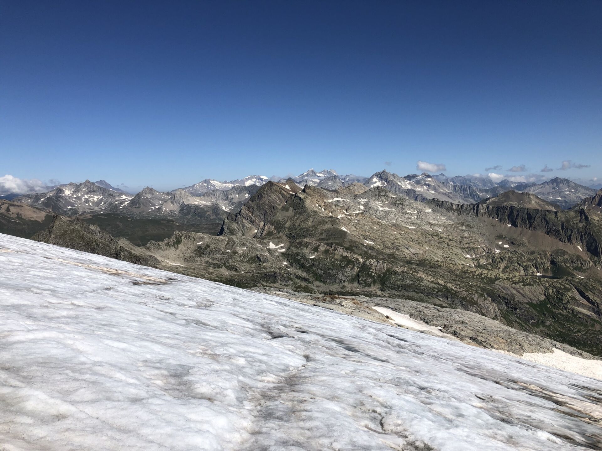 So mache ich es mir auf einem Felstürmchen bequem und geniesse den Basòdino-Ostgrat in vollen Zügen: Wie oft habe ich ihn nicht bewundert aus grosser Ferne! Nun sehe ich alle diese Orte voller Erinnerungen wieder. So die Glarner (Tödi), Tessiner (Pizzo del Sole) und Bündner Gipfel (Adula), meine Freunde rund um den Gotthard (Pizzo Centrale) und am Furkapass (Galenstock), die grossen Berner und Walliser, und und und. Grossartig. Happy man!