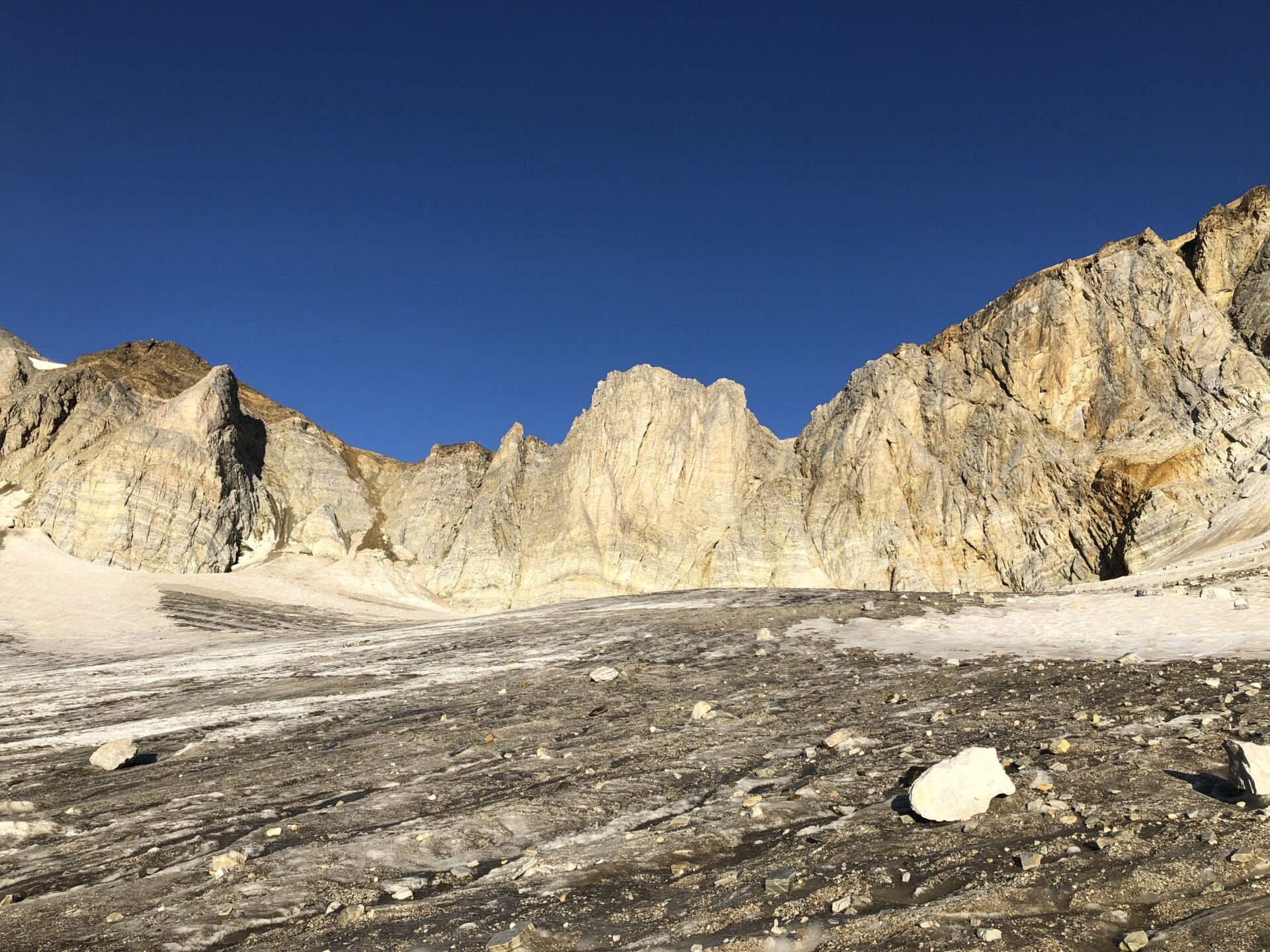 Schölligletscher, links der Mitte der Einstieg in den Klettersteig zum Joch
