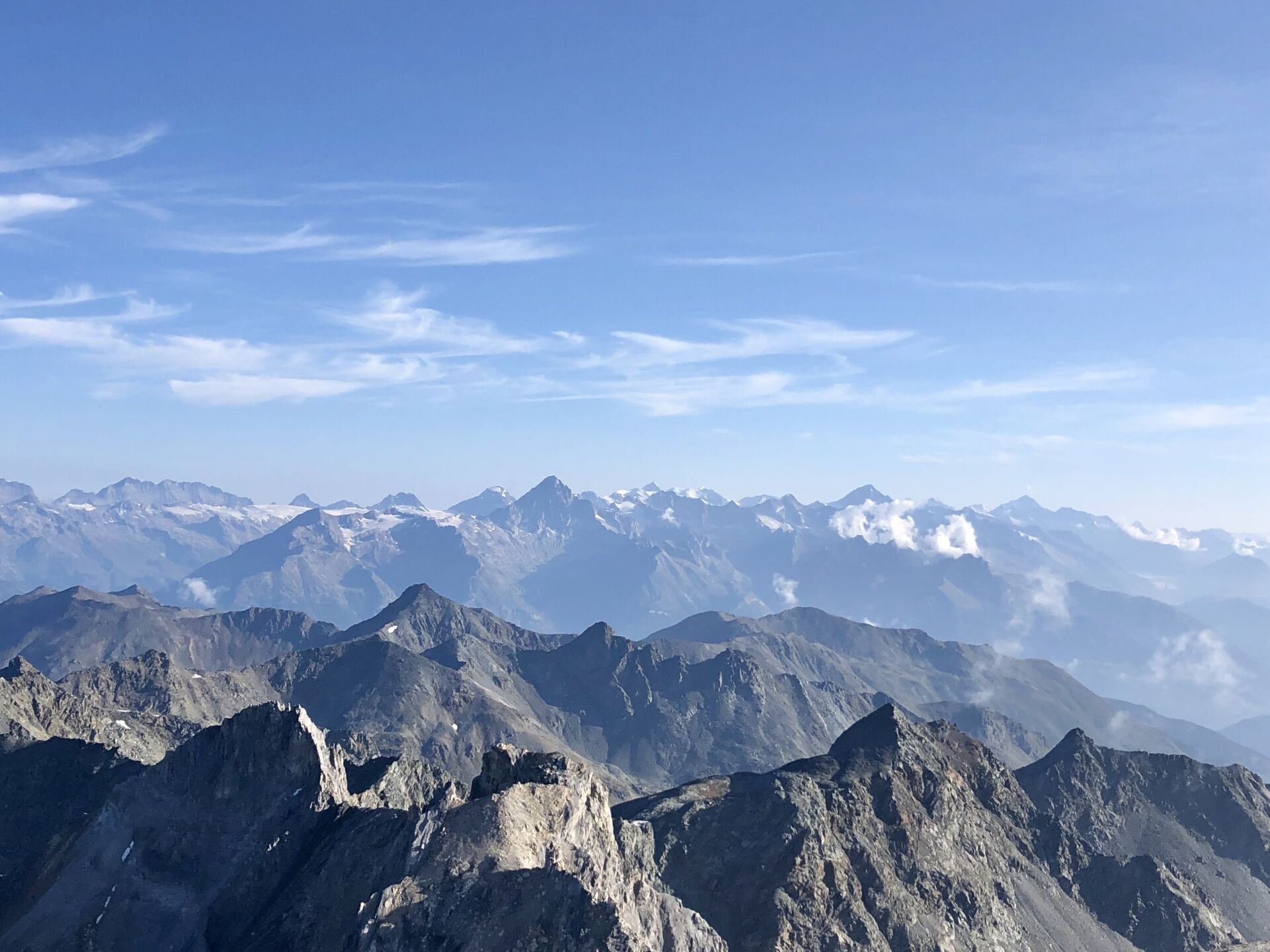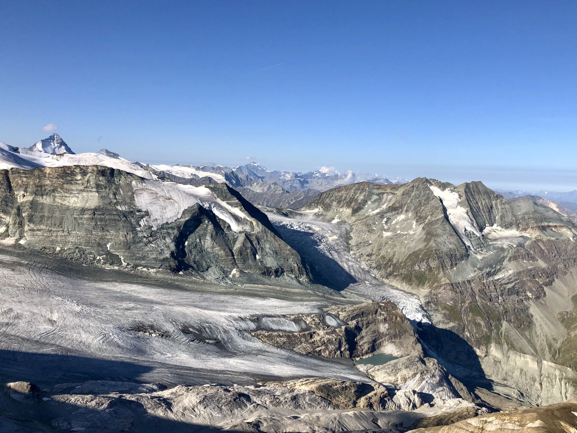 Von Dent Blanche bis Mont Blanc im Westen – und die grossen Gletscher…