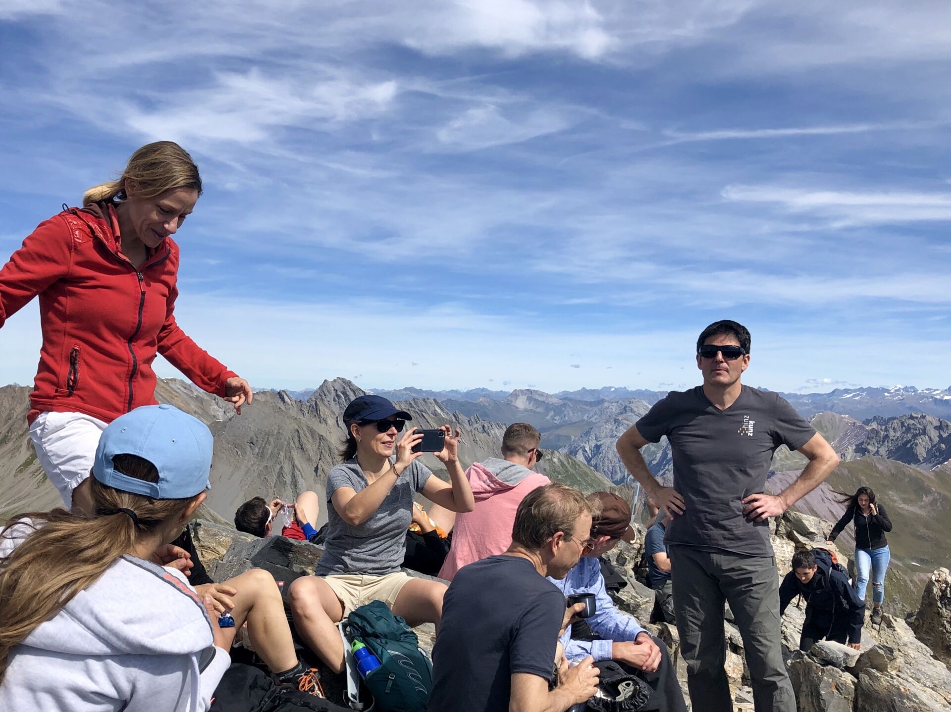 Nach und nach füllt sich das nicht allzu grosszügige Gipfelplateau mit meinen Begleitern. Als eine der ersten steht Christine auf ihrem Gipfel: Sie strahlt – wie freue ich mich mit ihr! Und noch viel mehr, als kurze Zeit später auch Martin das Traumziel seiner Frau erreicht, und die beiden sich in den Armen liegen.