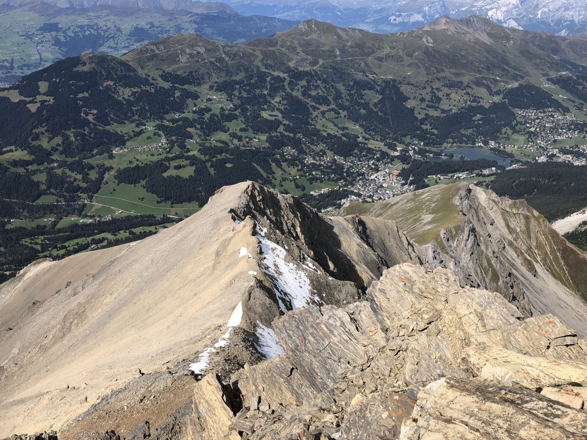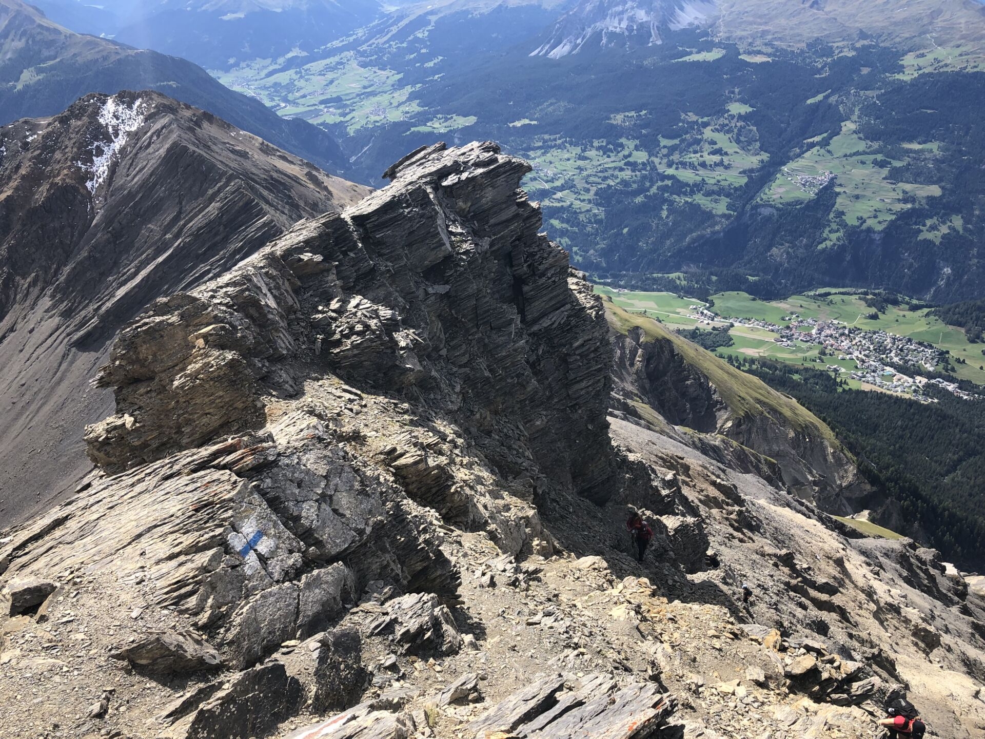 Der Gipfelblick über den Aufstiegsgrat hinunter zur Lenzerheide