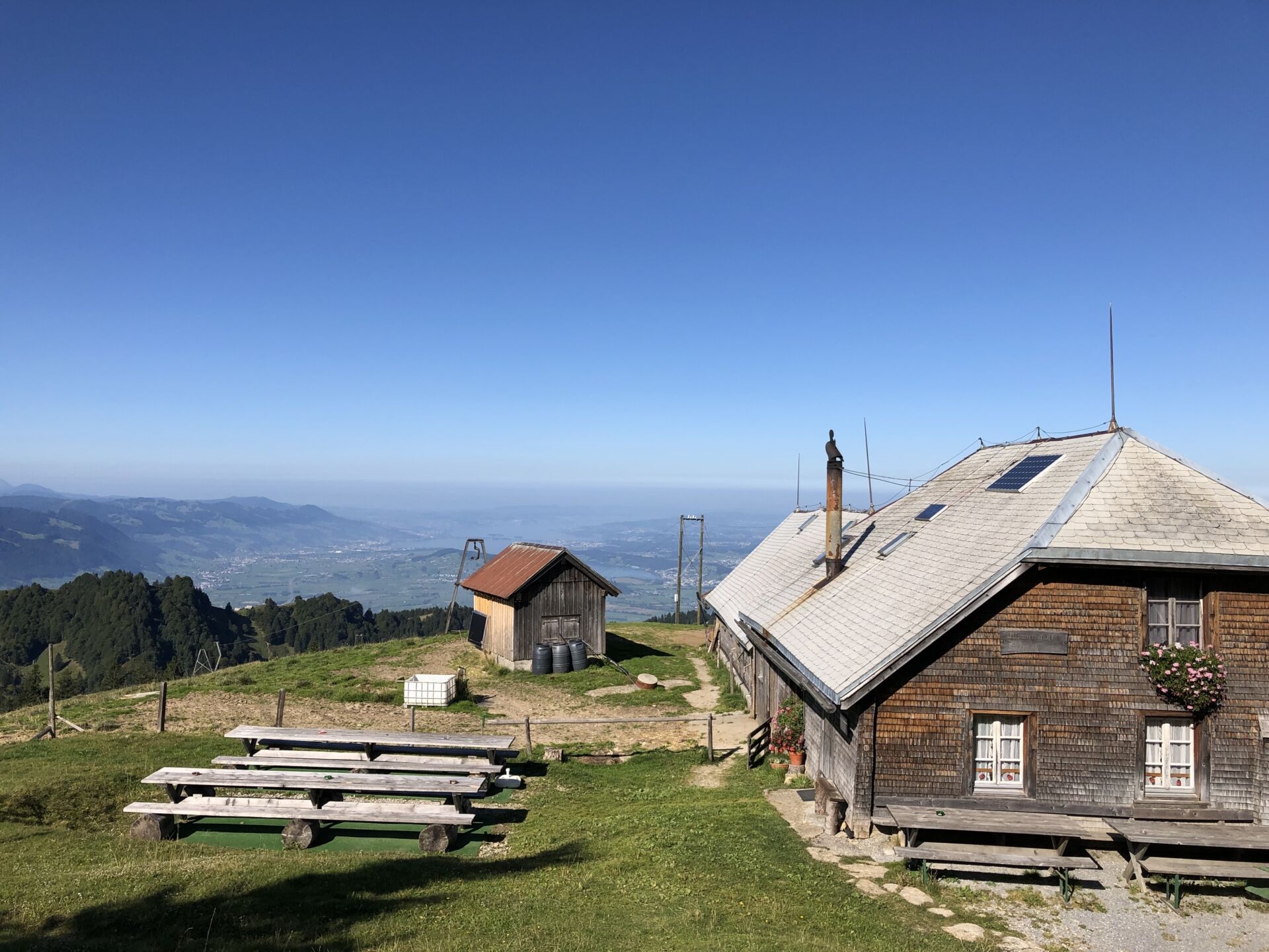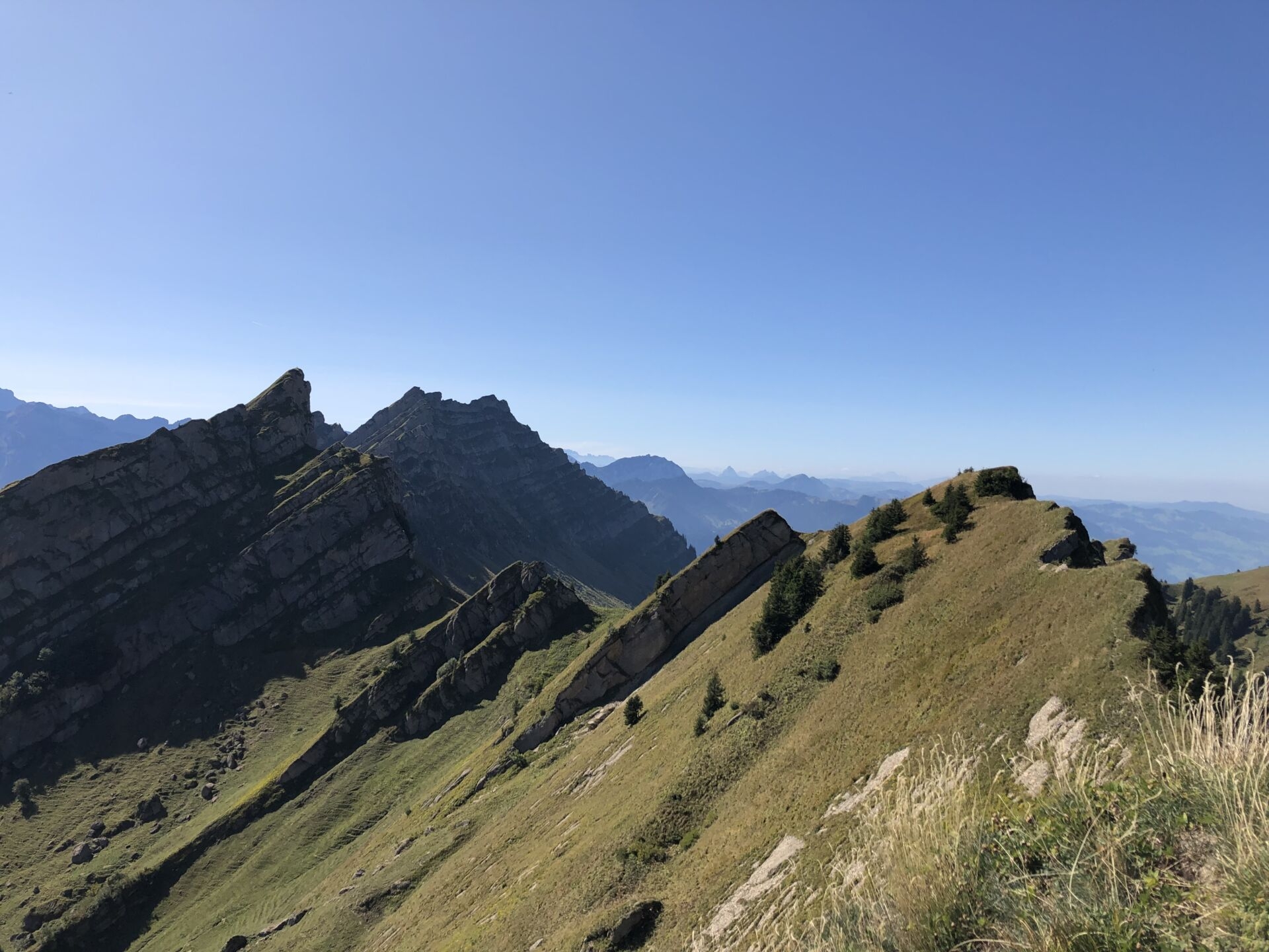 Der Abstieg vom Grappehorn ist nochmals etwas ausgesetzt, danach folgt Genusswandern über einen Grasgrat und hinunter zur Alp Ober Bätrus, wo wir auf einen markierten Wanderweg treffen. Nach einer kleinen Gegensteigung zum Furggli betreten wir wieder das Wängital. Wir steigen gemütlich schwatzend nach Hinderwänge ab, wo uns im Besenbeizli das ersehnte Panache serviert wird.