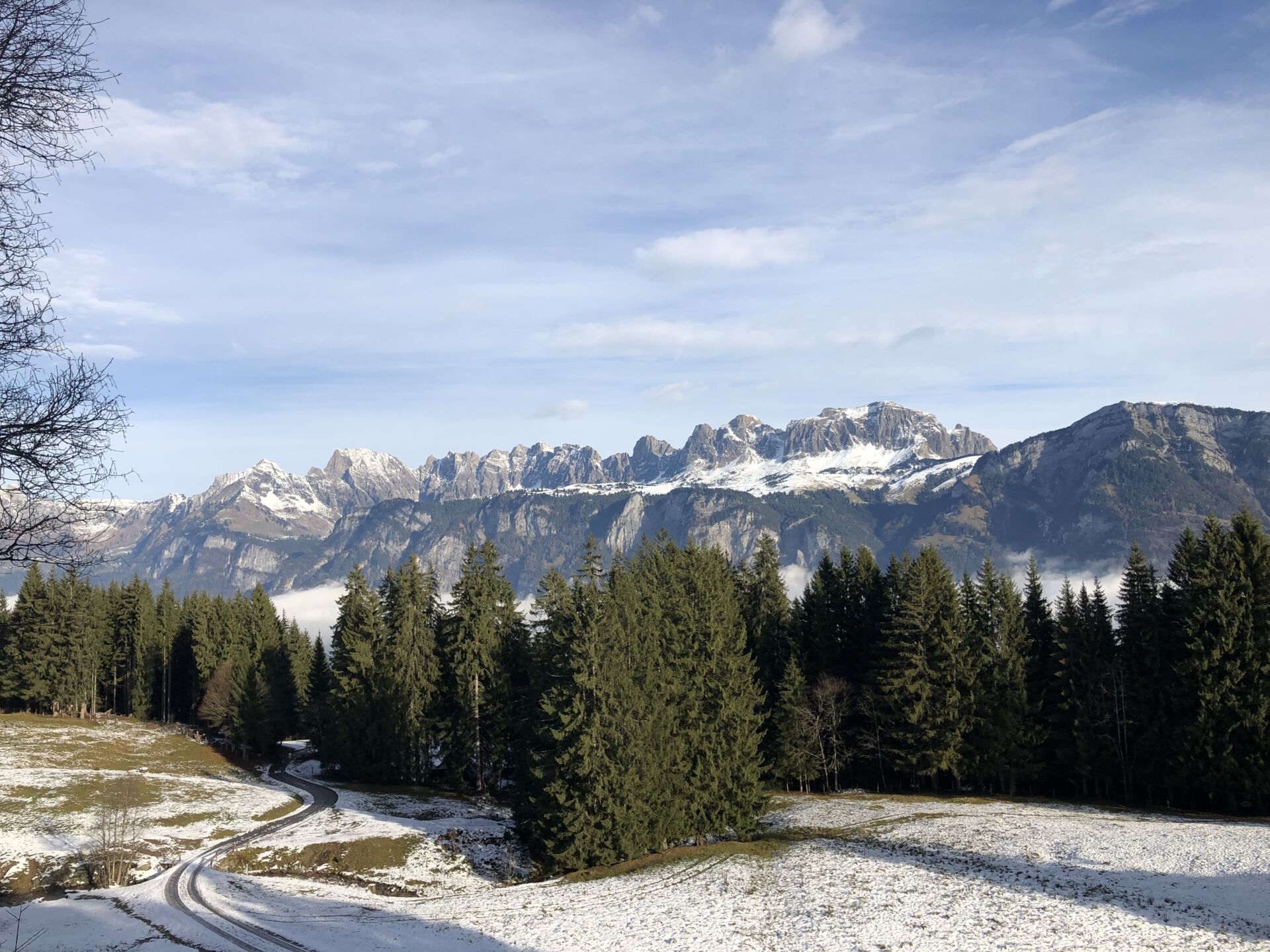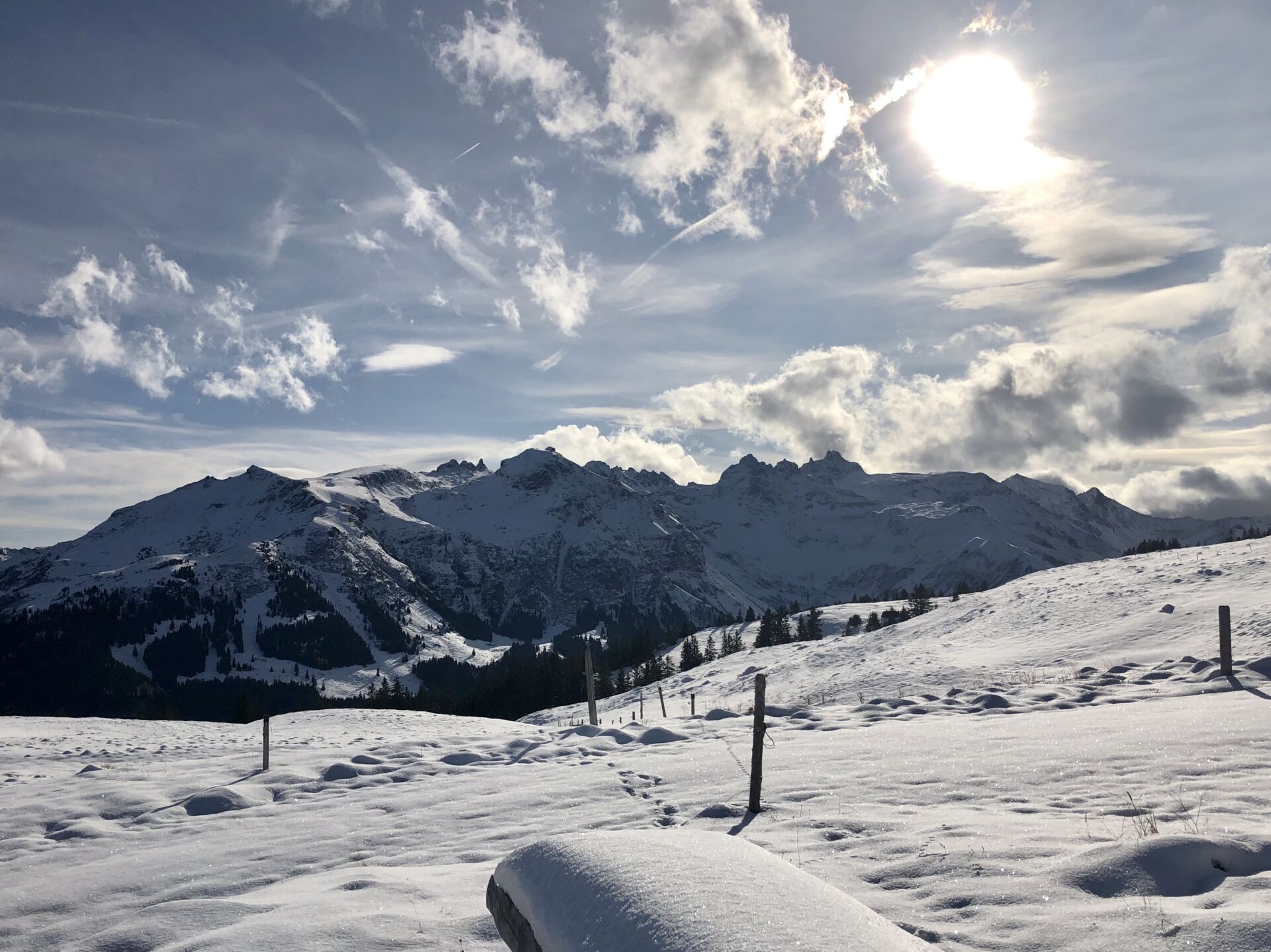 Nach einem Tee im charmefreien Bahnhofsbuffet in Sargans, das mir trotzdem in guter Erinnerung bleibt, treffe ich Sevi. Wir kurven das schmale Strässchen an der ostlichen Flanke des Weisstannentals nach Vermol hinauf, wo wir neben dem geschlossenen „Alpenrösli“ parkieren. Die wenigen Hochnebelschwaden liegen unter uns, der Himmel ist fast blau. Die Schneegrenze ist nur wenige Meter über uns.