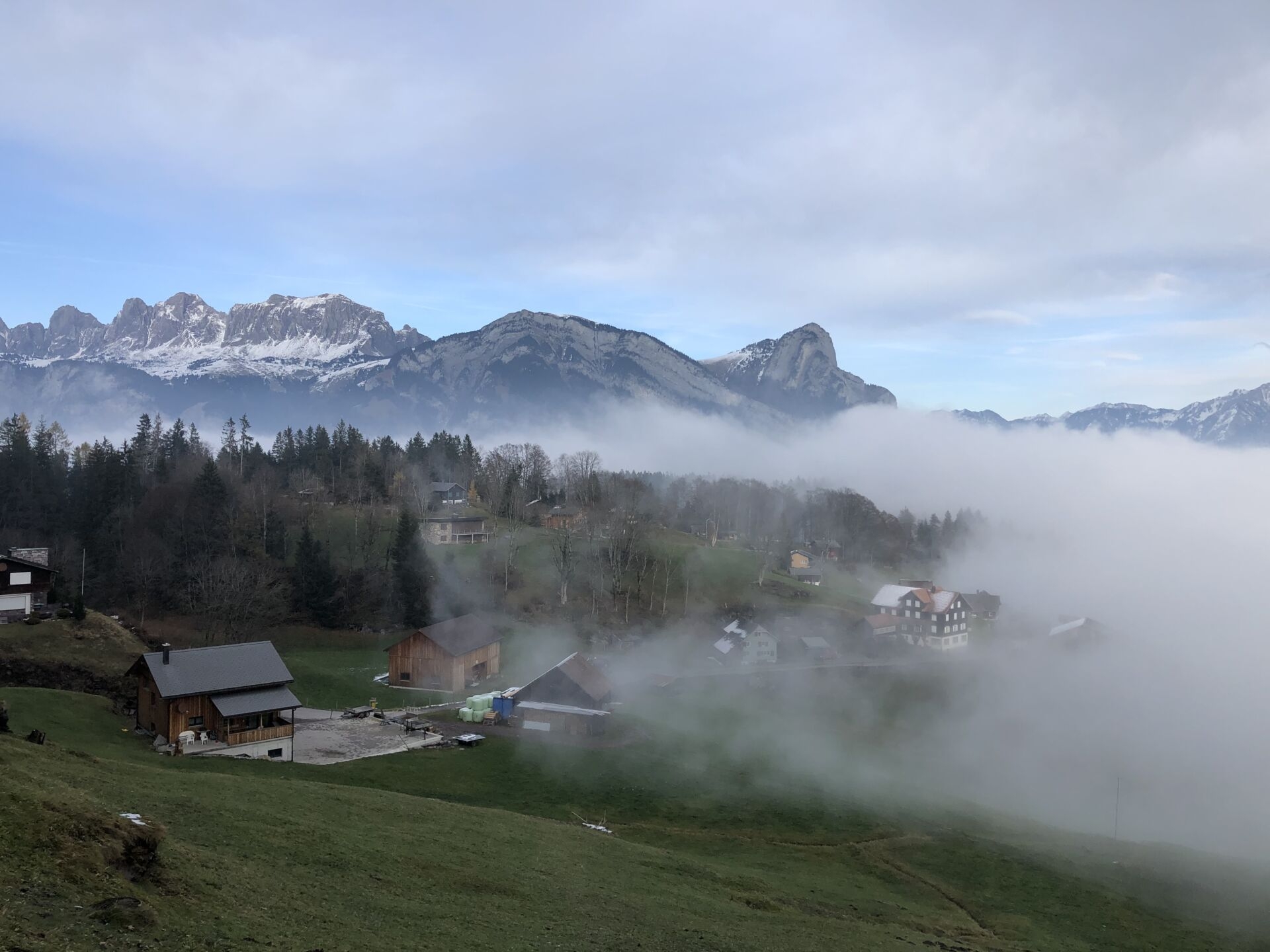 Als wir wieder beim Auto ankommen, sind wir zufrieden. Der Föhn hat nachgelassen, dafür hat uns der Hochnebel eingeholt. November eben.