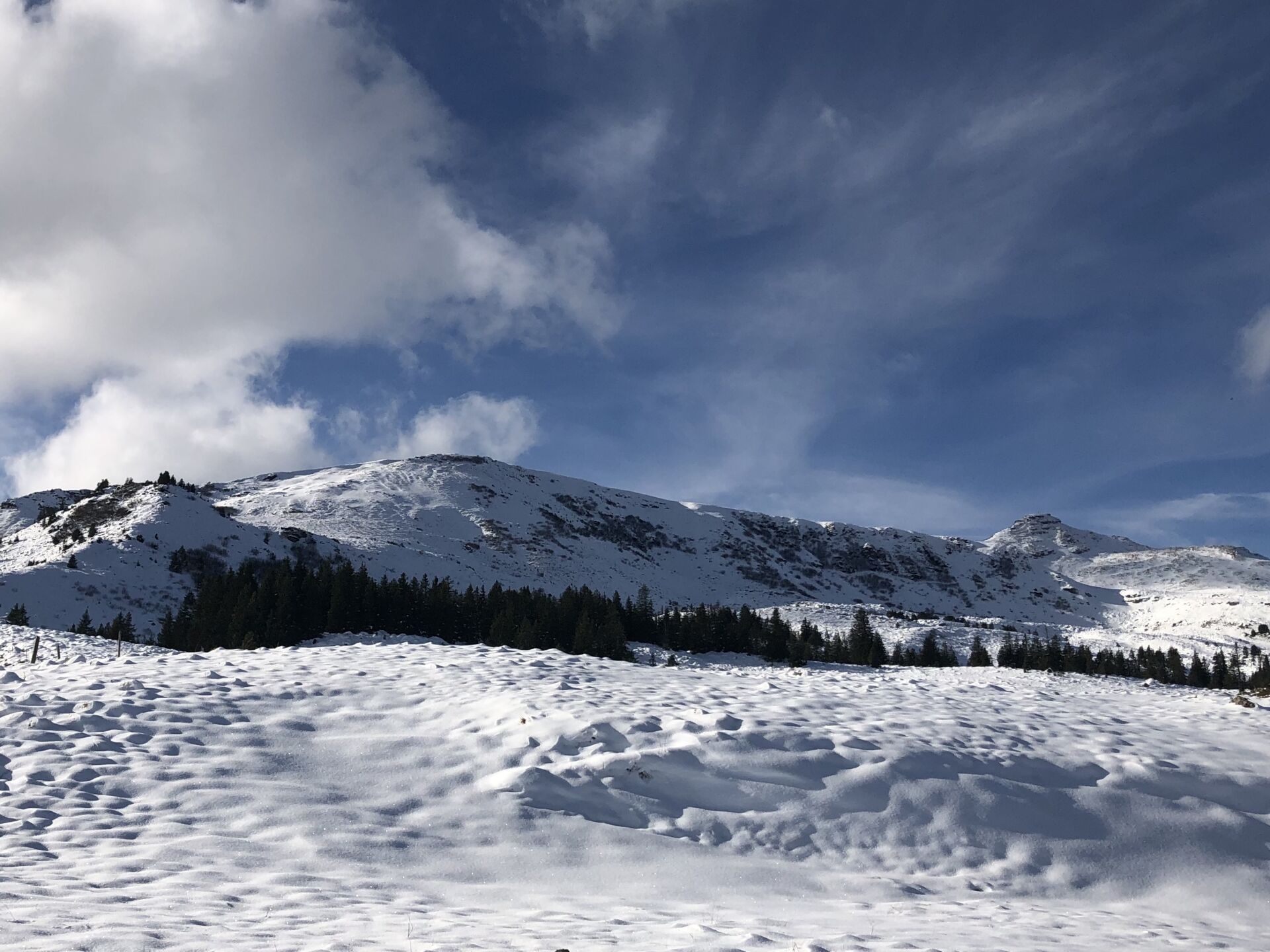 Die Wintersaison hat begonnen. Noch ist es allerdings zu früh für die Tourenskis. So erkunden wir heute mit den Schneeschuhen die sanften Hänge der Alp Tamons im Sarganserland. Wir steigen auf den Hühnerkopf, wo uns der heftige Föhn die Zähne des Winters zeigt.