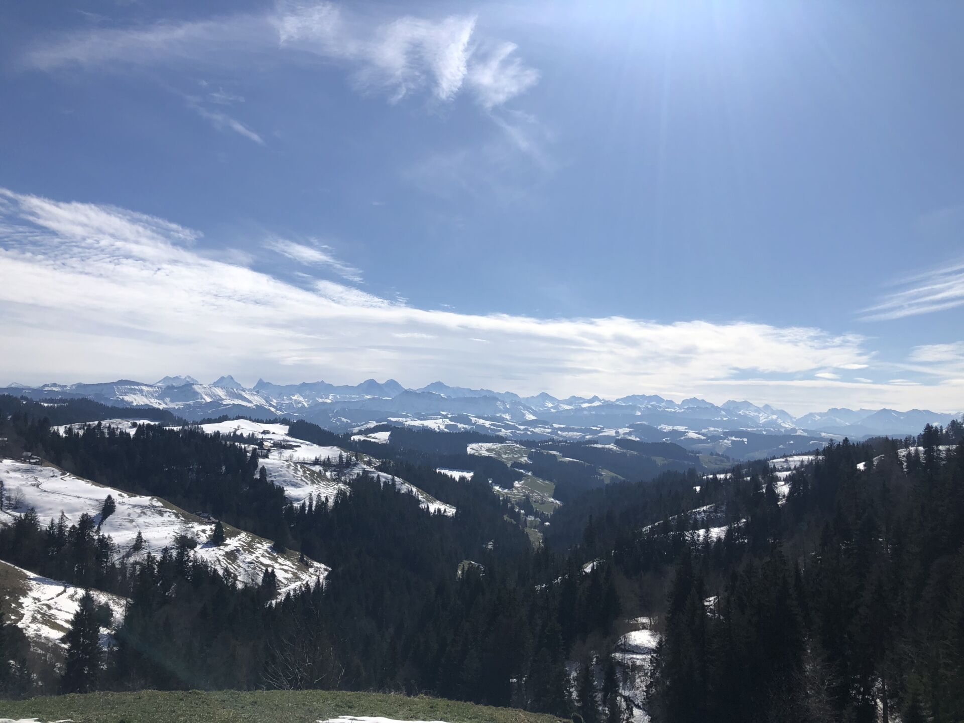 Das Panorama von der Lüdernalp zu den grossen Bernern (am letzten Sonntag, heute war Lockdown)