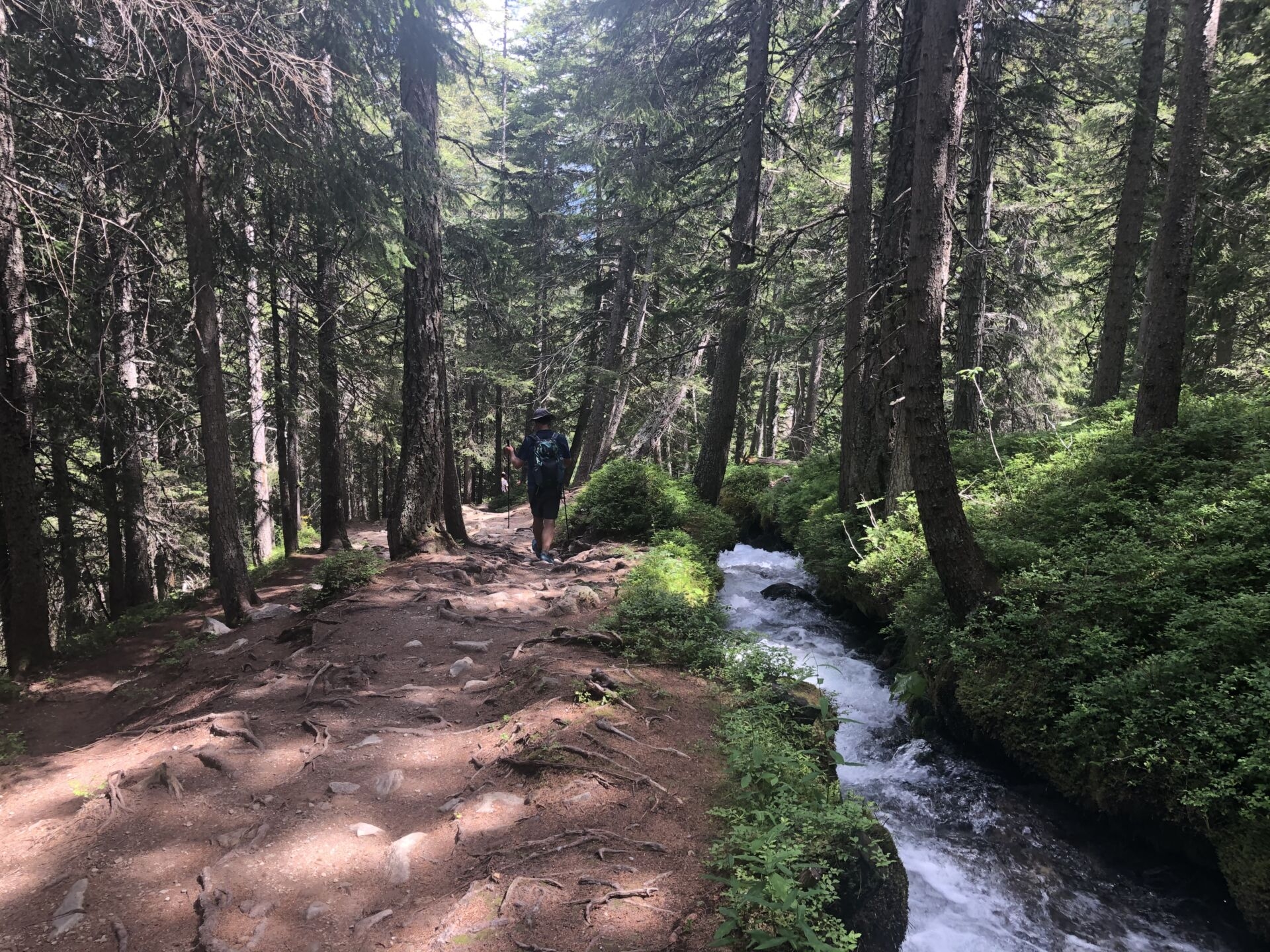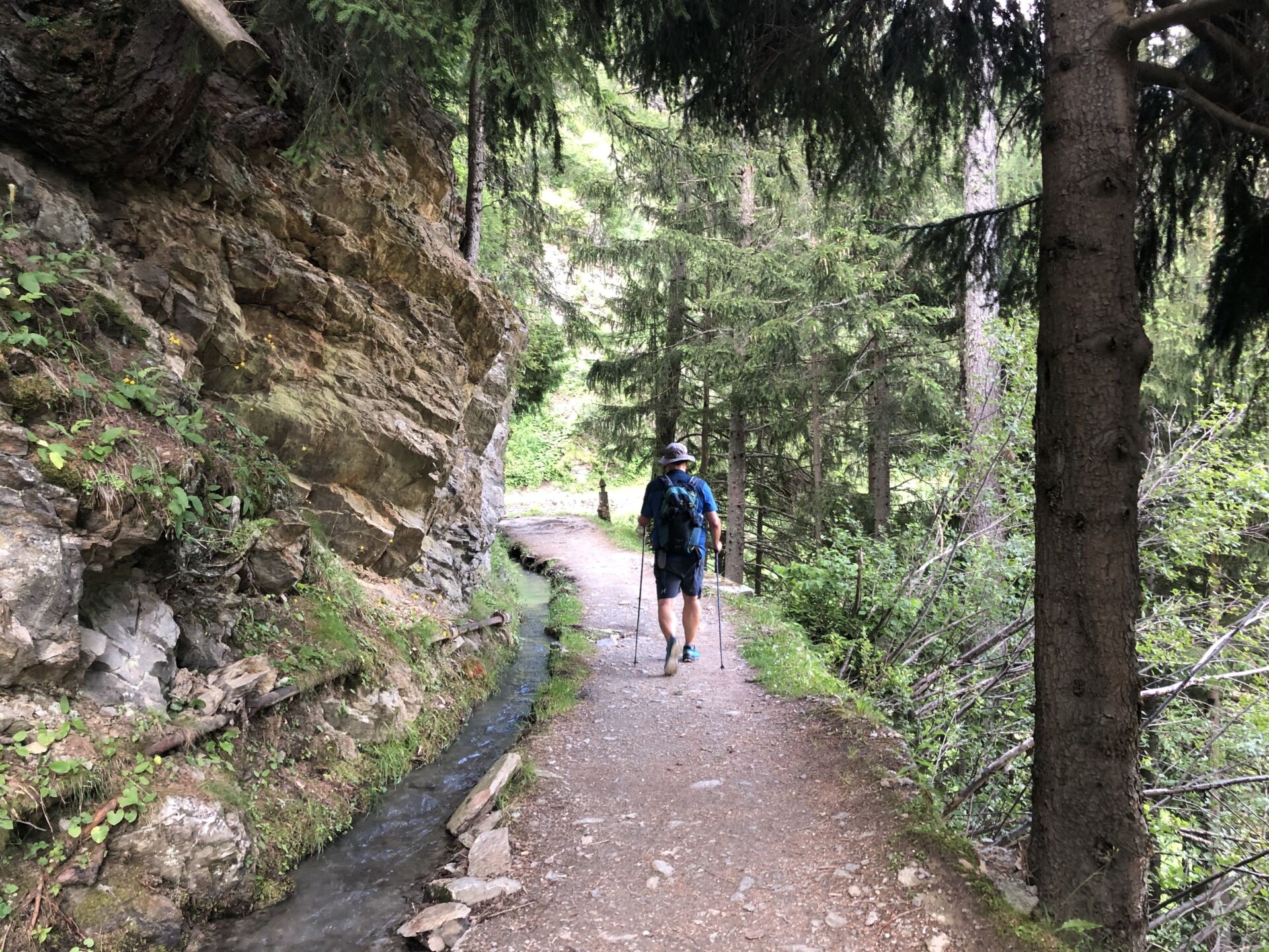 Relaxt und tief zufrieden nehmen wir schliesslich die letzten 30 Minuten nach Champex hinunter unter die Füsse. Auf dem Weg zweigt zu meiner Überraschung ein Kanal vom Bach ab, der dem langen Hang durch den Wald folgt. Unser Wanderweg begleitet ihn. Er scheint schliesslich nur einen Zweck zu haben: den See von Champex zu füllen.