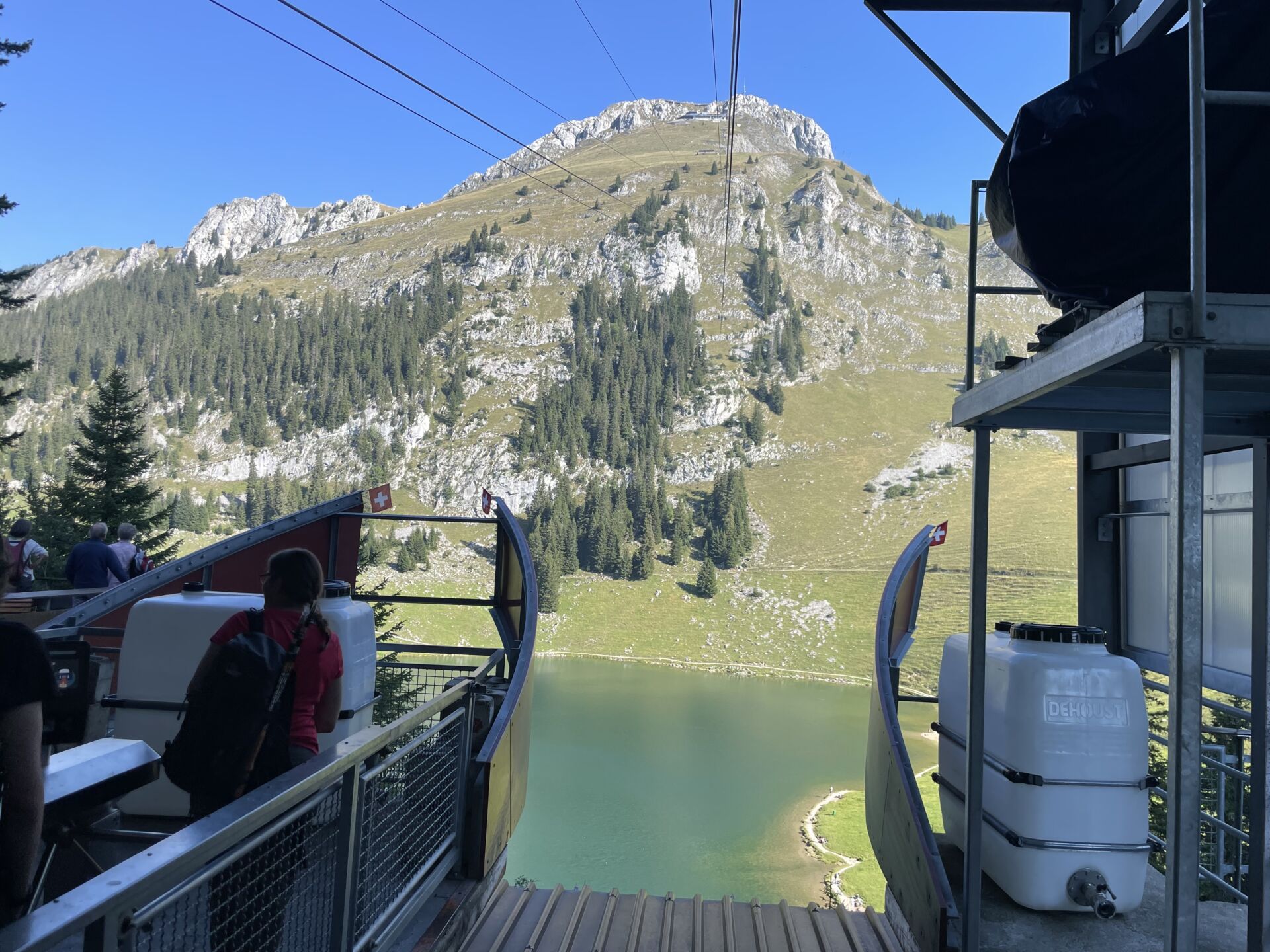 Endlich wieder wandern mit Rico! Ich freue mich, meinen Wanderfreund für Hochtouren auch einmal für eine einfachere Wanderung in den Voralpen zu begeistern. Wir treffen uns am Bahnhof Erlenbach im Simmental und nutzen die 10 Minuten Fussmarsch zur Stockhornbahn für ein erstes Update. Es ist schon halb Zehn und es soll heute sehr heiss werden, entsprechend lösen wir ein Ticket für „ganz nach oben“ – die Tour liesse sich mit 300 Höhenmeter Mehraufwand auch von der Mittelstation aus bewältigen.