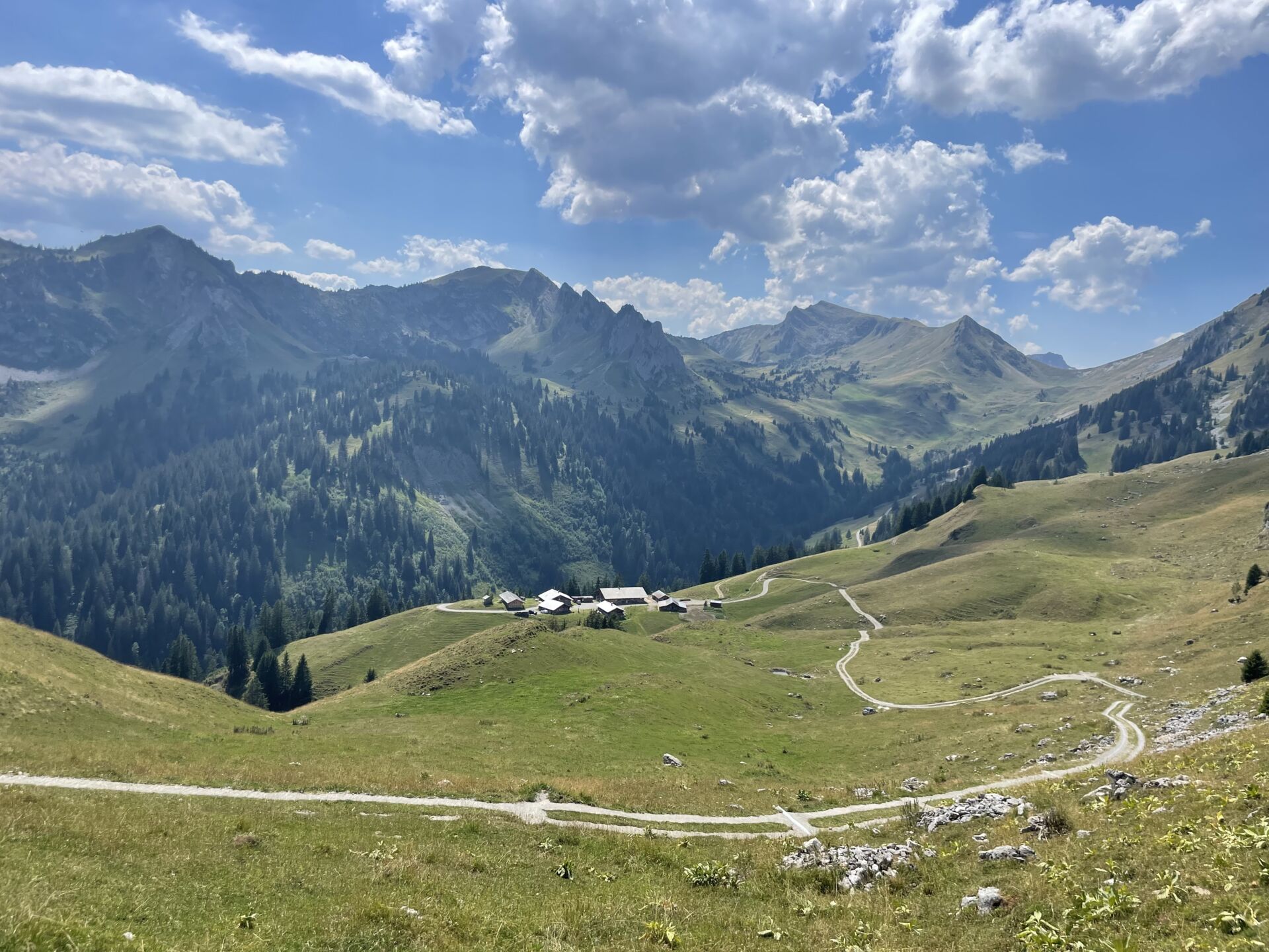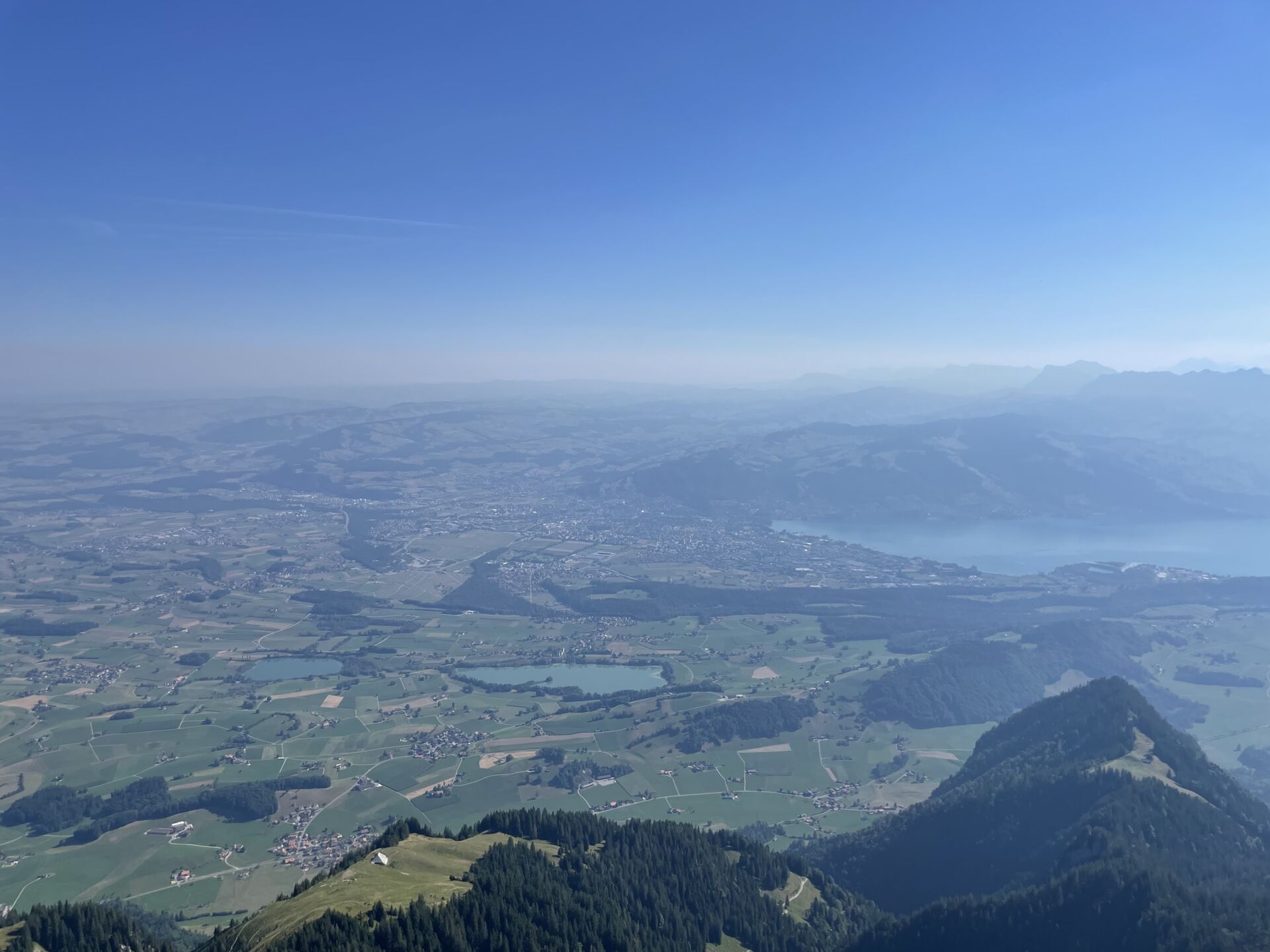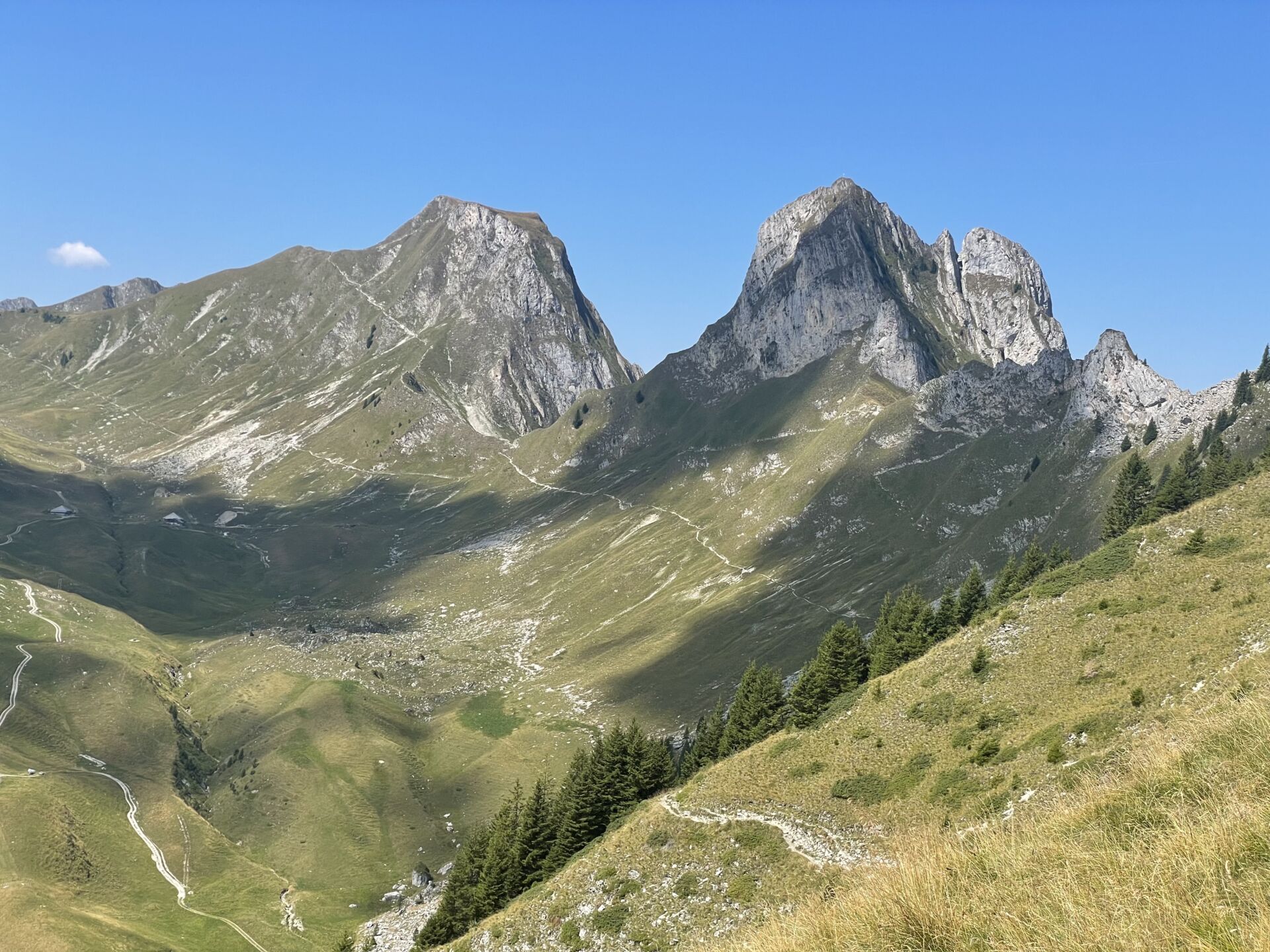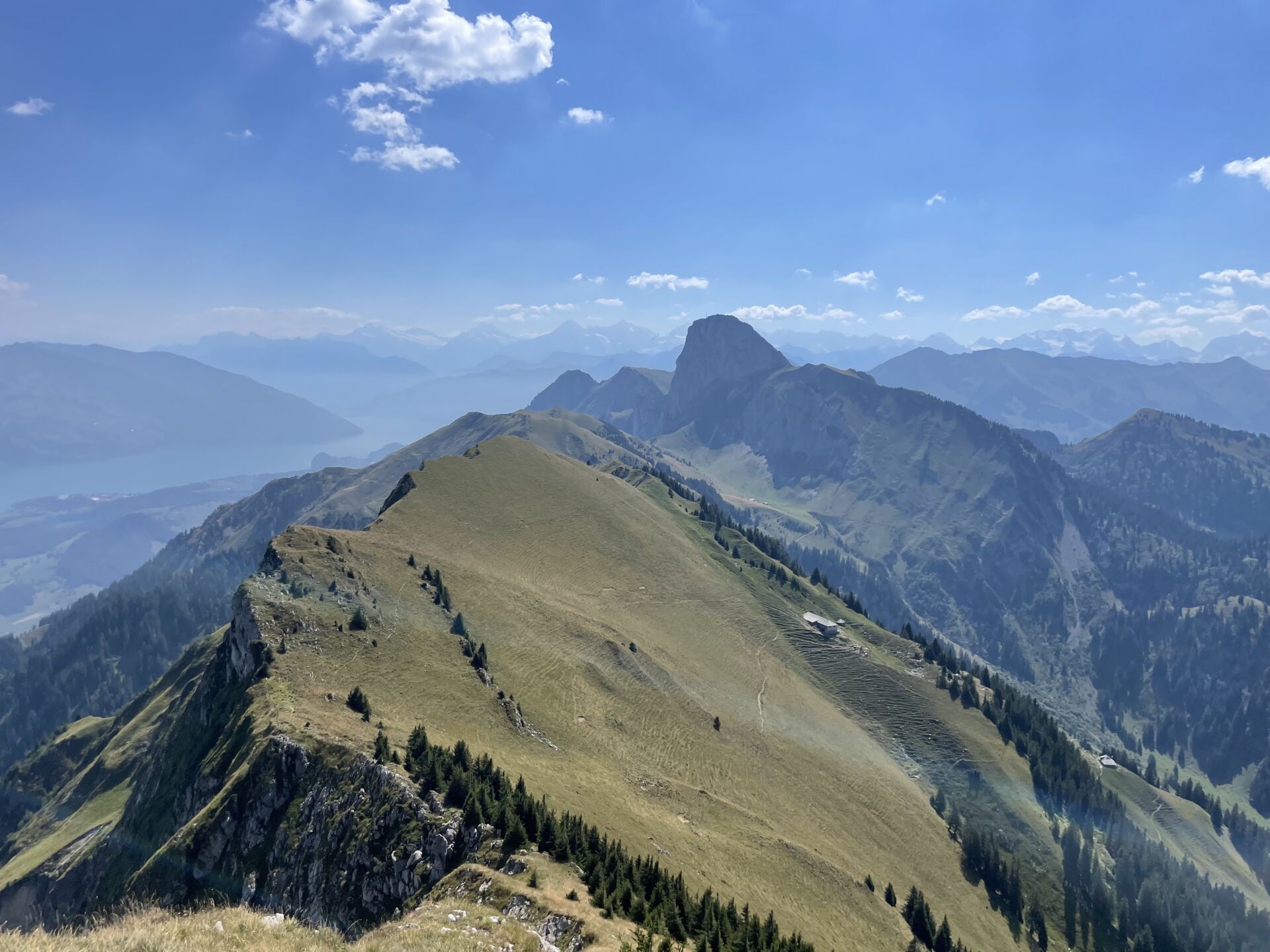 Es ist ein Panoramafest, nur die Alpengipfel zieren sich jetzt immer mehr an diesem heissen Augusttag. Umso mehr Aufmerksamkeit bekommen dafür die unzähligen Simmentaler und Fribourger Gipfelchen, die uns von ihnen trennen.