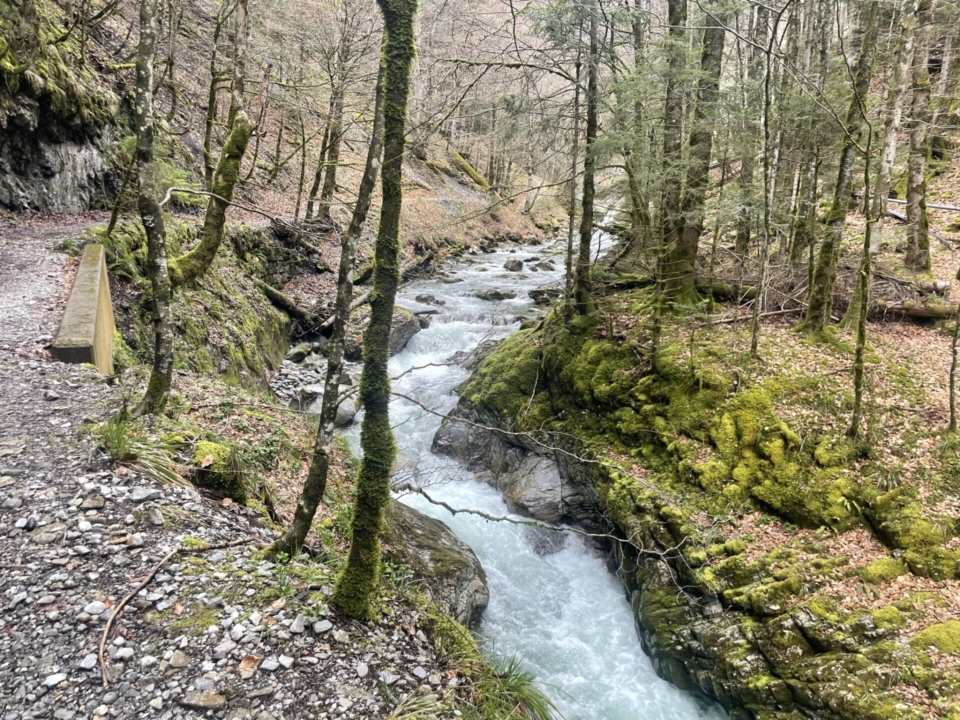 Ich schmunzle und suche dann das Dorflädeli, um mir eine Schoggi und ein Getränk zu kaufen. Dann laufe ich weiter nach Boltigen – man könnte hier aber auch den Zug nehmen. Der folgende Teil ist eine Mischung zwischen Asphalt und Fahrweg. Die Geisslein und die Kälber am Wegrand sind nett, aber diese letzte Stunde nach Boltigen ist der weniger lohnenswerte Teil der Wanderung. Trotzdem – der „deep dive“ ins Simmental hat gut getan und ruft zur Nachahmung auf.