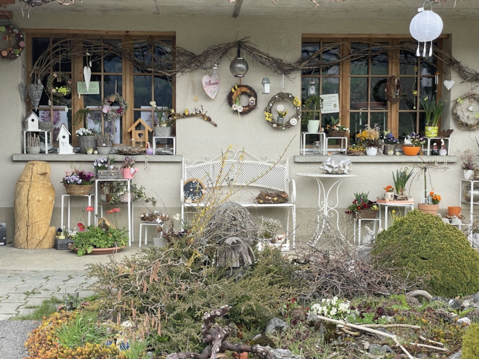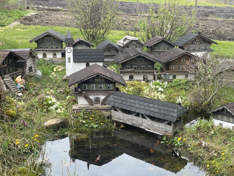 Das war’s aber mit dem anspruchsvollen Teil der Wanderung. Meine Route folgt nun dem Fahrsträsschen aus dem Morgetetal hinaus und zweigt dann wieder über Wiesenpfade nach Oberwil ab. Es tropft kurz etwas, aber der 120gr-Knirps im Rucksack ist für solche Intermezzos ein sicherer Wert. Oberwil ist dann schon fast etwas kitschig — ein stolzer Bewohner hat die schönsten Simmentaler Häuser sogar „miniatur“ in seinem Garten nachgebaut.