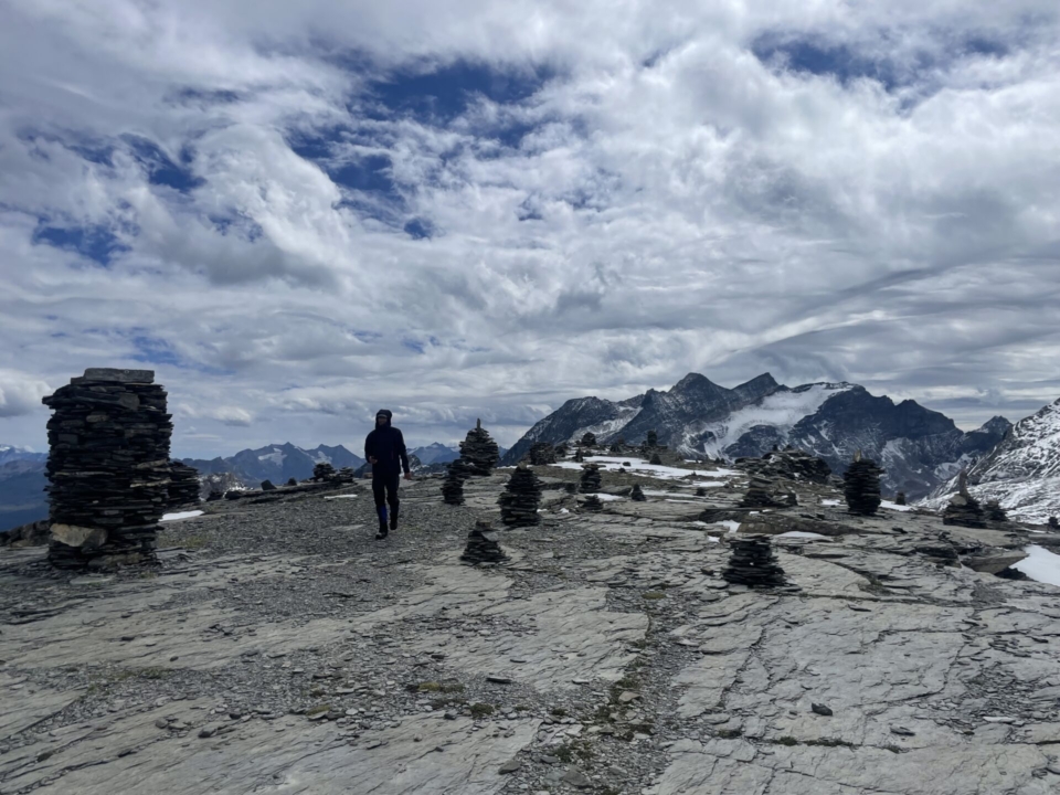 Seht selbst: der fantastische Rundblick auf die frischverschneiten Berge, die Dutzenden Steinmännchen auf der übergrossen Tafel, die wilden Wolkenspiele. Grossartig. Und als Tüpfchen aufs i der schmale Wurmvorsatz des Gipfels, auf dem sich spektakuläre Fotos schiessen lassen. Wir sind fast benommen vor Freude und harren trotz Wind und Kälte lange aus. Wer je zur Bifertenhütte geht sollte diese Gipfelfreude nicht verpassen.