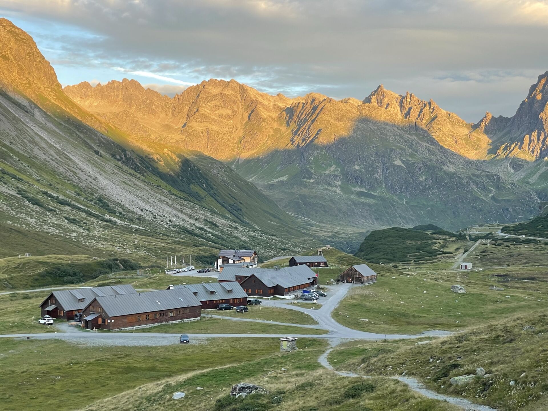 Ich schlief überraschend gut in der Madlenenhütte. Dennoch bin ich um 6.00 wach, geduscht, angezogen und bereit zum Loslaufen. Frühstück gibt es leider erst am 7.00. Doch da passt mich Wirtin Christine beim Ausgang ab und insistiert: „Du isst zuerst etwas“! Dagegen habe ich natürlich nichts einzuwenden und so komme ich zu einem Privatfrühstück mit feinem Kaffee und ofenfrischen Semmeln. Ein guter Start in den Tag!