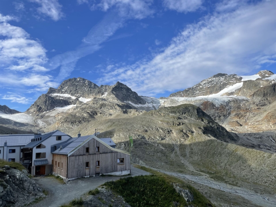 Die grosse Wiesbadnerhütte vor der prächtigen Silvretta-Kulisse