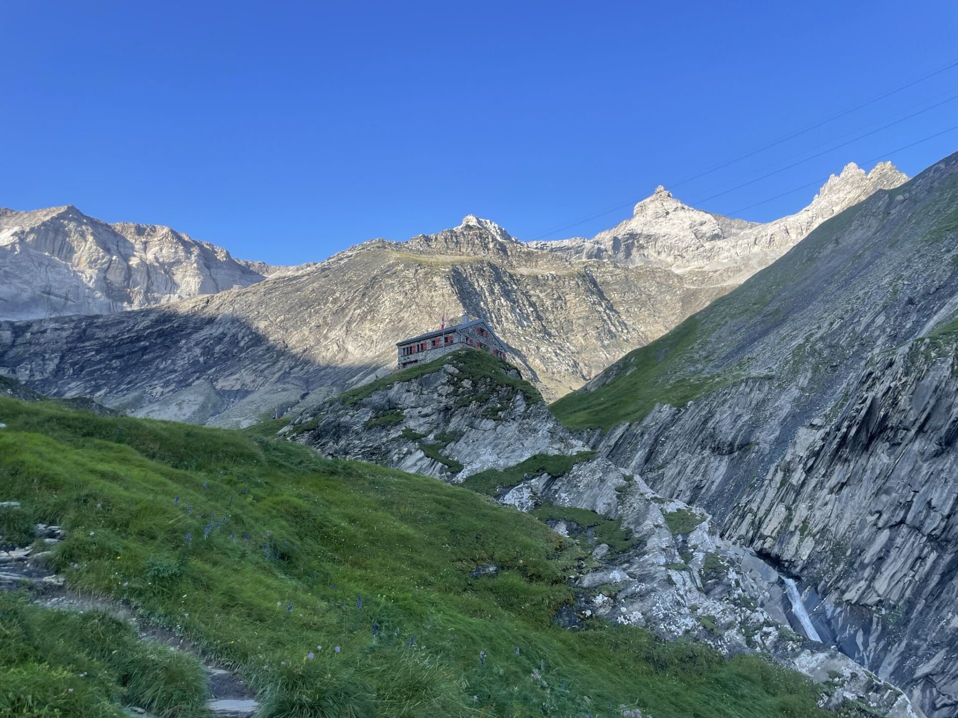 Nun wird es wieder gutmütig und bald erreichen wir die Sether Schutzhütte am Fuss des Sether Furgglen. Das bedeutet nochmals etwas steigen, zunächst durch ein schmales Couloir, dann Blöcke überspringend und schliesslich querend über einen guten Kiespfad. Das hätte ich mir gemäss Karte schwieriger vorgestellt!