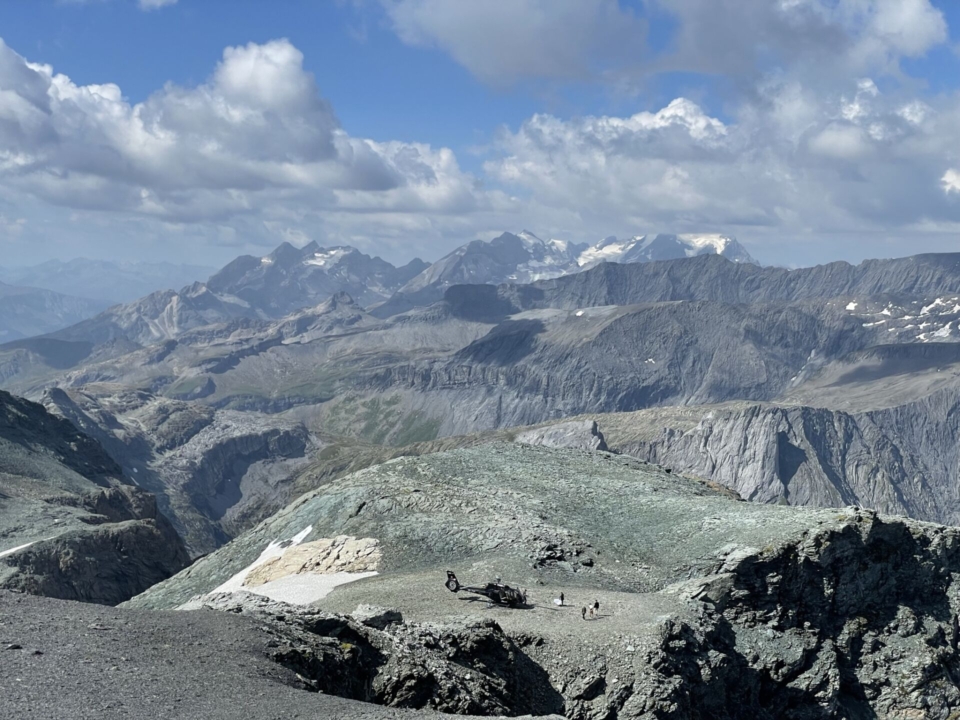 Dieses wunderbare Panorama begleitet den Gratsurfer drei Stunden (unten im Bild: Picknick mit Heli)