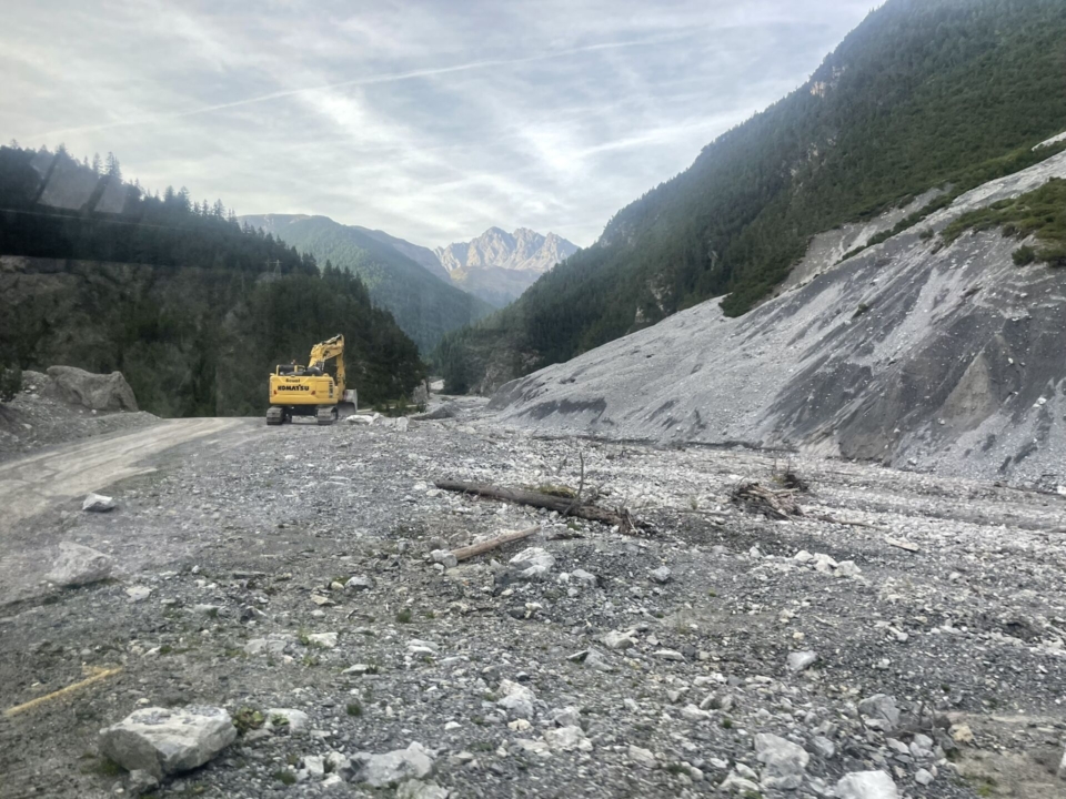 Ich fahre mit dem ersten Postauto von Scuol nach S-charl. Es ist eine Schüttelfahrt durch ein von den Gewittern der letzten Woche gezeichnetes Tal. S-charl war vier Tage von der Umwelt abgeschlossen, die Strasse ist erst seit 36 Stunden wieder offen. Während der Busfahrt wird klar warum. Unmengen von Geröll wurden von den wilden Wassern verschoben und mussten weggeräumt werden. Eindrücklich, dieser permanente Kampf gegen die Natur, der hier immer wieder von Neuem geleistet werden muss um das Tal am (Zivilisations-)Leben zu erhalten.
