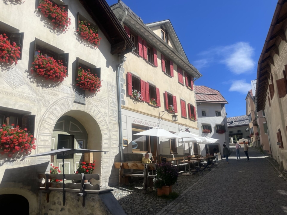 Wie gerne kehre ich nach Guarda zurück! Zunächst lockt mich die Aussicht auf die feine Rösti mit Liongina wieder ins Crusch Alba zum Lunch. Diesmal nehme ich mir mehr Zeit für die Bewunderung des Bijou-Dorfs.