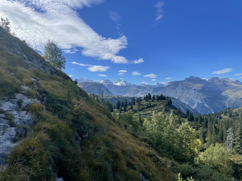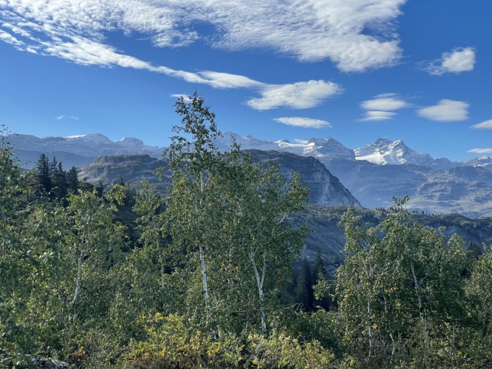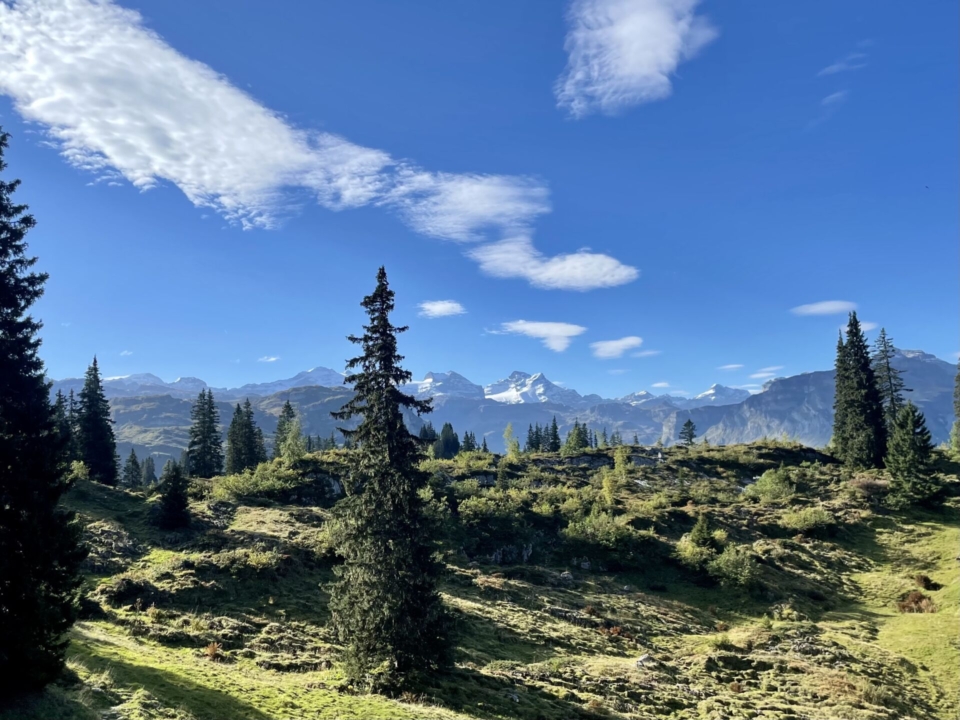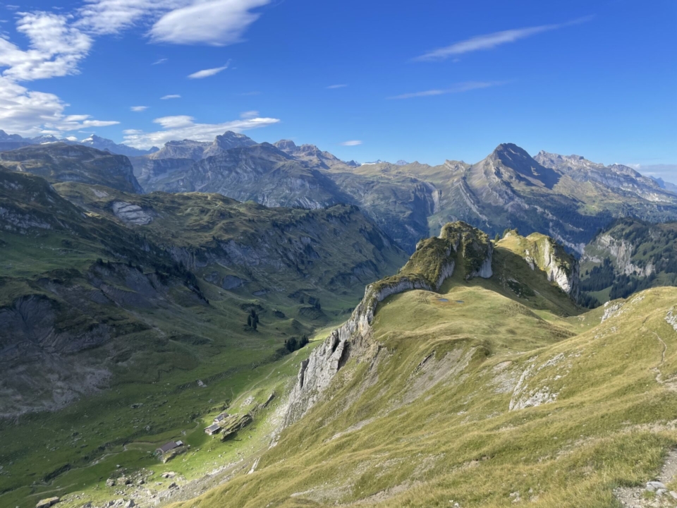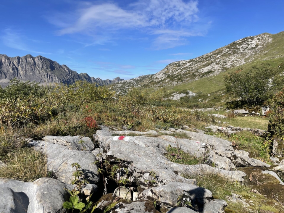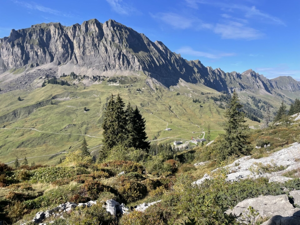 Mehr als gemütlich und immer wieder dankbar zurückblickend (die besten Fotos entstanden auf dem Rückweg) steige ich über den gleichen Weg wieder ab. Von der Alp Tor zurück zum Pass wähle ich die etwas höher führende Variante über Spitzibühl zur Obristenhütte. Hier ist es noch etwas baumärmer und spaltiger. Eine Unkonzentriertheit führt (nur) zu einem blutigen Scheinbein, aber das gehört halt einfach dazu.