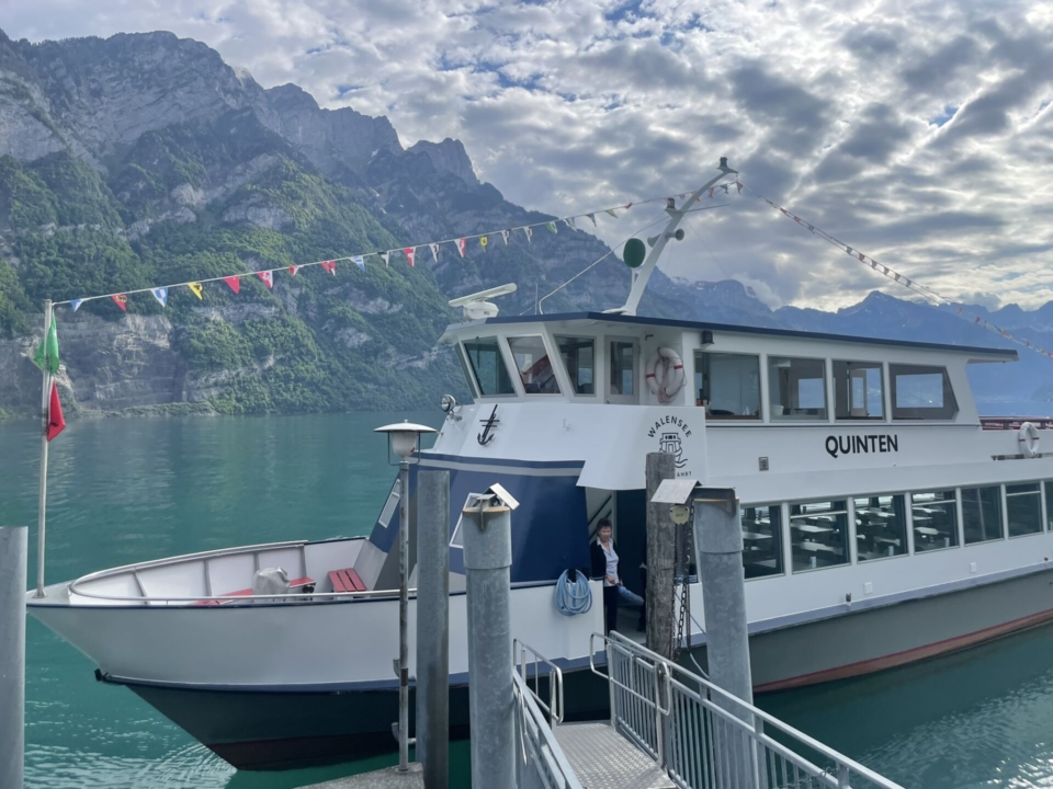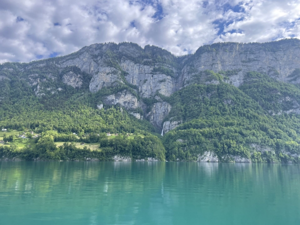 Lea und Janik wollen wandern und ich darf mit. Was für ein Genuss, mit jungen Menschen unterwegs zu sein! Sie lassen sich gerne etwas vom alten Hasen erklären, ansonsten höre ich im Zug nach Mühlehorn aber gespannt dem Gespräch der beiden engagierten Ingenieure zu. In der stillen Seegemeinde am Walensee steigen wir auf das Kursschiff um und lassen uns über den See nach Betlis schippern. Währenddessen blicke ich fasziniert auf die mächtigen Wände der Churfirsten. Bald passieren wir den tiefen Einschnitt, durch den die Wassermassen des Seerenbachs über 800m in die Tiefe stürzen. Das werden wir uns bald näher ansehen!