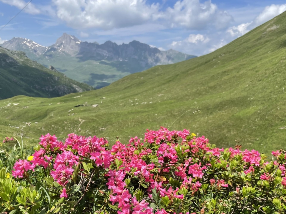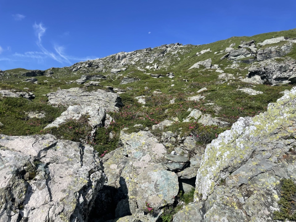 Mit Felsen und Alpenrosen gespicktes Gelände…