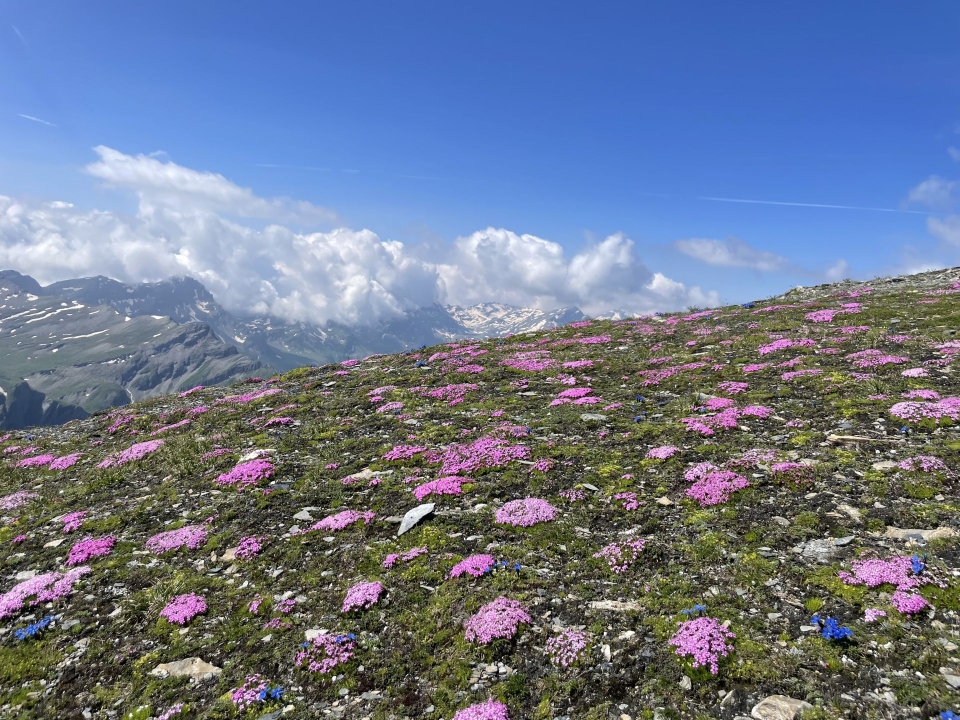 Die Eltern von Heinz waren Bauern, deren Rindli hier oben sömmerten. Ich durfte einmal mit zu den gastgebenden Bergbauern und lernte die Schweiz von einer neuen Seite kennen. Das Plumpsklo mit Zeitungspapier, die frische Milch direkt von der Kuh, der Käselaib auf dem Tisch, die geräucherte Wurst aus dem schwarzen Kamin, das schweisstreibende Heuen. Das war wirklich neu für das zarte Pfarrersöhnchen. Ich habe es nie vergessen. 1975 war das, wie ich einem alten Fotoalbum entnehme. Emotional wie ich bin, will ich genau nochmals dorthin. Dort, wo die Rindli zwischen Alpenrosen und Felsbrocken weideten.
