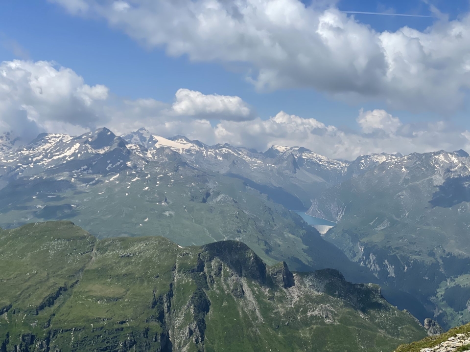 Gipfelblick über das Valsertal zum Zervrailasee und Rheinwaldhorn