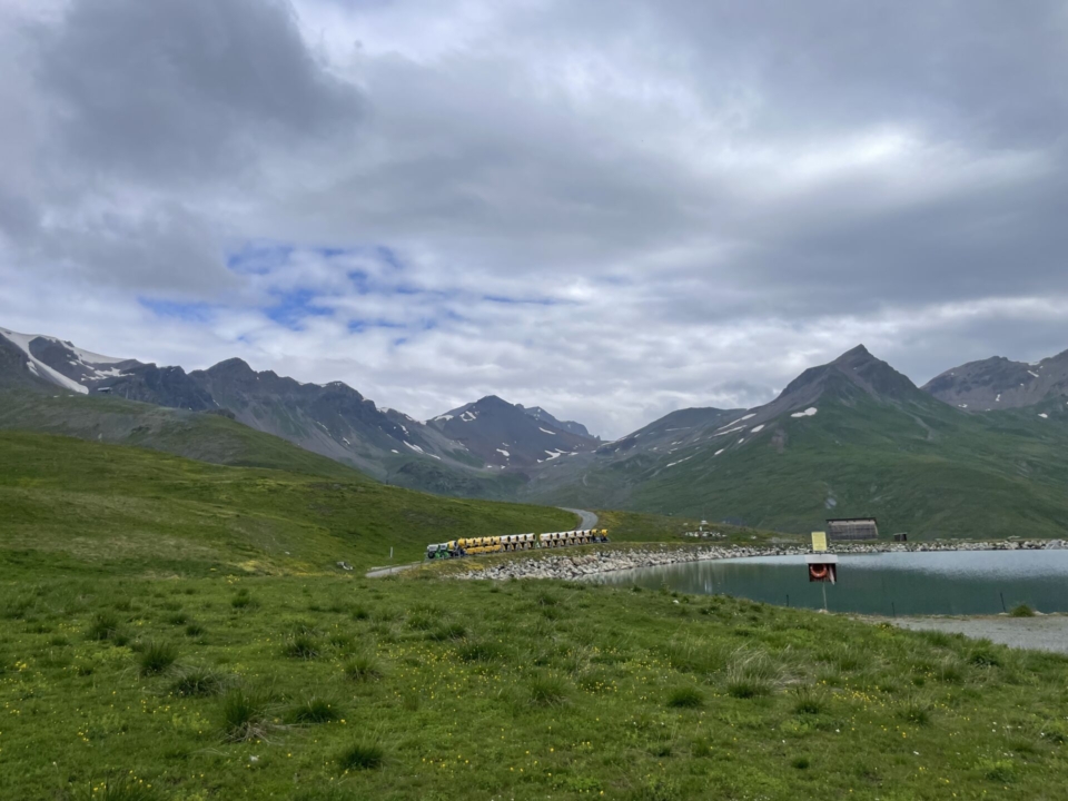 Die Gondel startet zwar erst um 8.30, aber nach der anstrengenden Tour von gestern war ein ausgedehntes Frühstück ganz okay. Nur 10 Minuten später stehe ich auf über 2100m. Von Donnerstag bis Sonntag gibt ein Sessellift sogar nochmals 300 Höhenmeter drauf, aber darauf verzichte ich. Lieber folge ich dem Fahrsträsschen, das über üppige Alpweiden zum Speichersee und der Bergstation der besagten Sesselbahn hochführt. In Reih und Glied stehen die Wasserkanonen für den nächsten Winter bereit. Schon verrückt, dass dies auf 2400m Höhe nötig geworden ist! Aber es sind eben exponierte Südhänge, wo sich die Ski- und Board-Begeisterten im Winter austoben wollen.