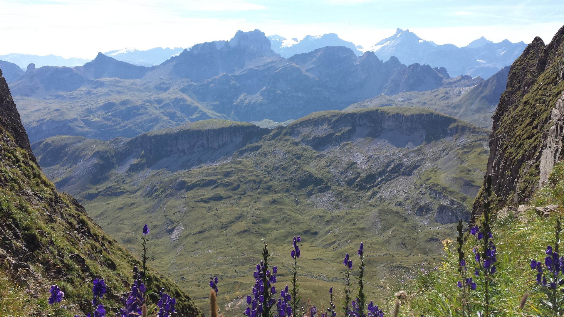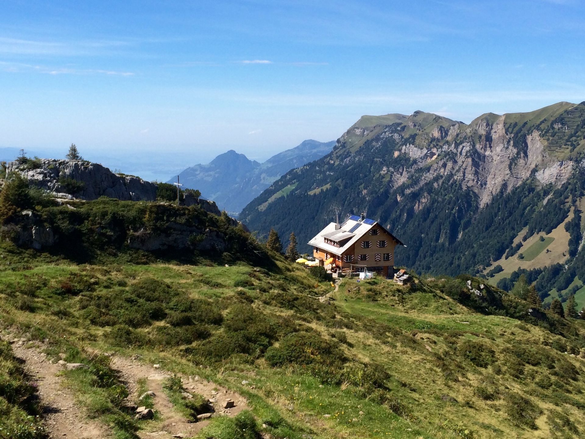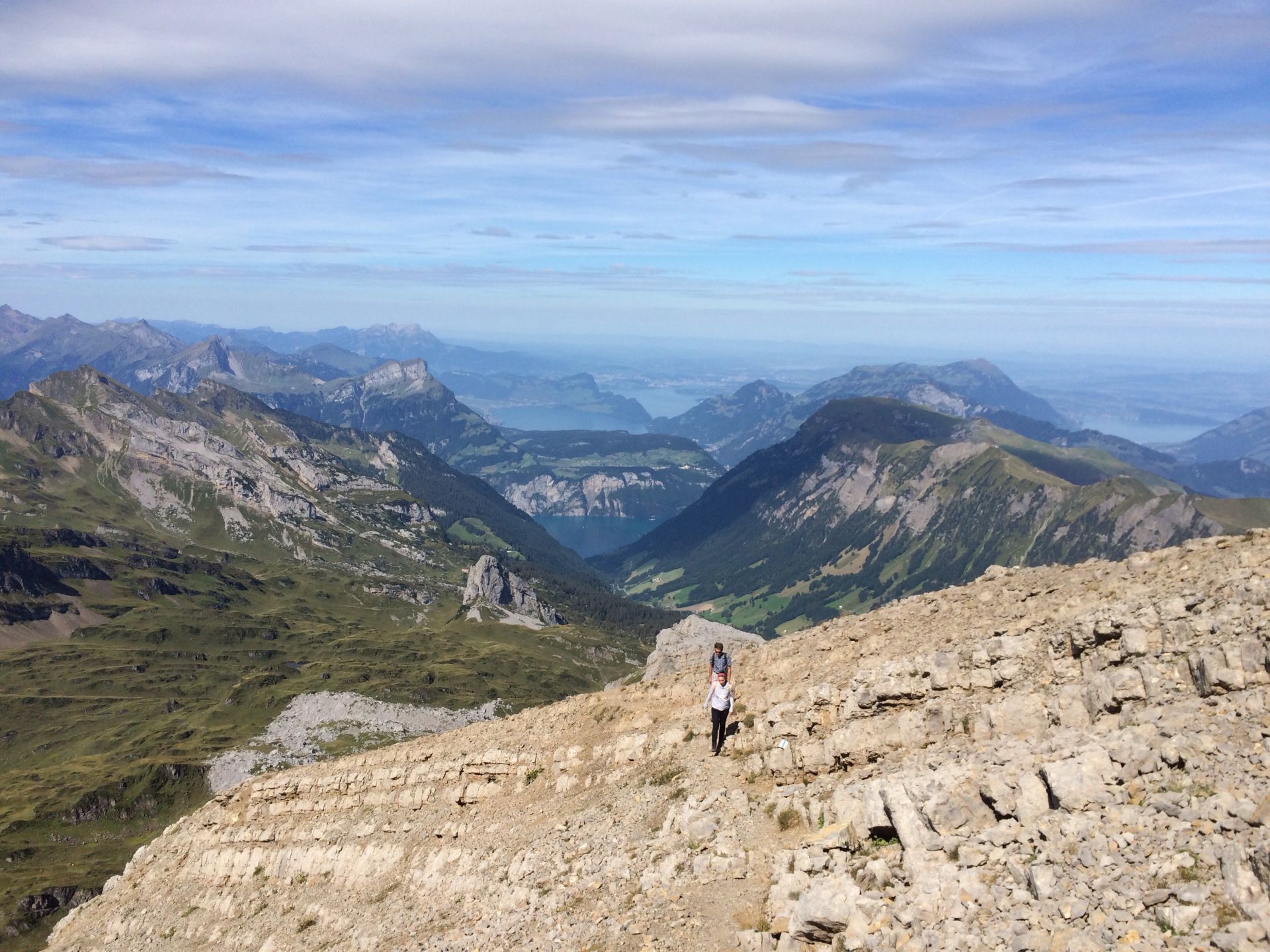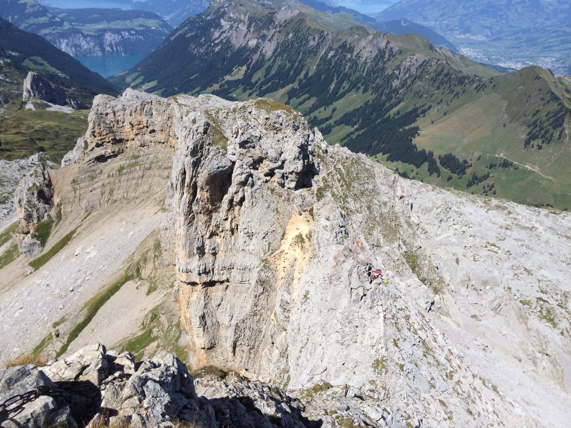 Wir erreichen die Gratkante und blicken hinab auf die Seenalp mit ihrem hübschen Seeli. Dahinter reihen sich die bekannten Urner Gipfel auf, besonders schön präsentiert sich die Claridenkette bis zum Windgällen. Auf einem Graskänzeli machen wir eine kurze Pause und lassen das reiche Panorama auf uns einwirken. Dreht man sich um blickt man über den Vierwaldstättersee nach Luzern bis zum Jura. Alleine schon für ein Picknick hier wäre das ein Ausflug wert (und als T3 einfach)!