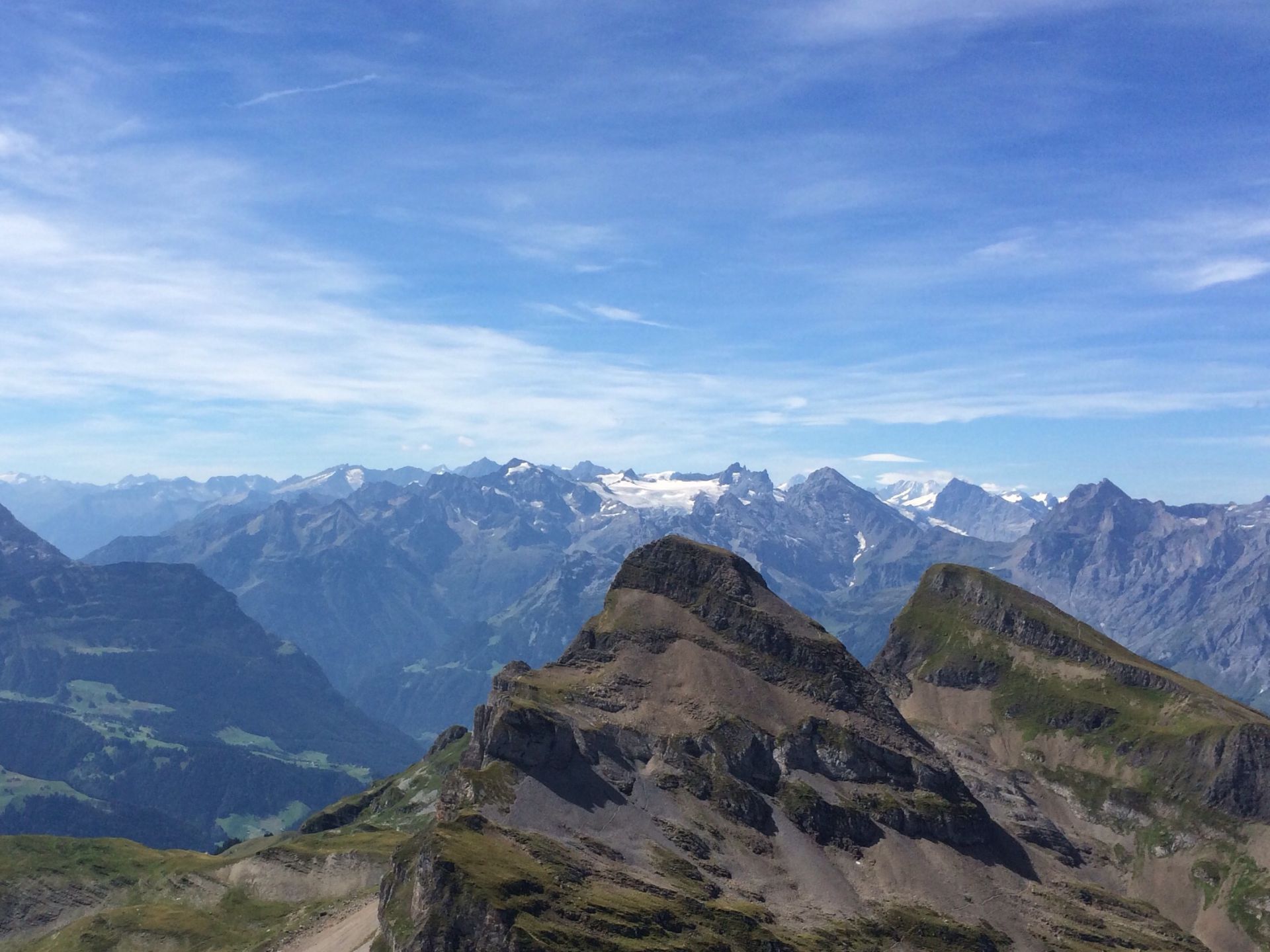 Die kleineren Nachbarn Fulen und Rossstock, dahinter die Spannortgruppe, der Titlis und die Berner Alpen