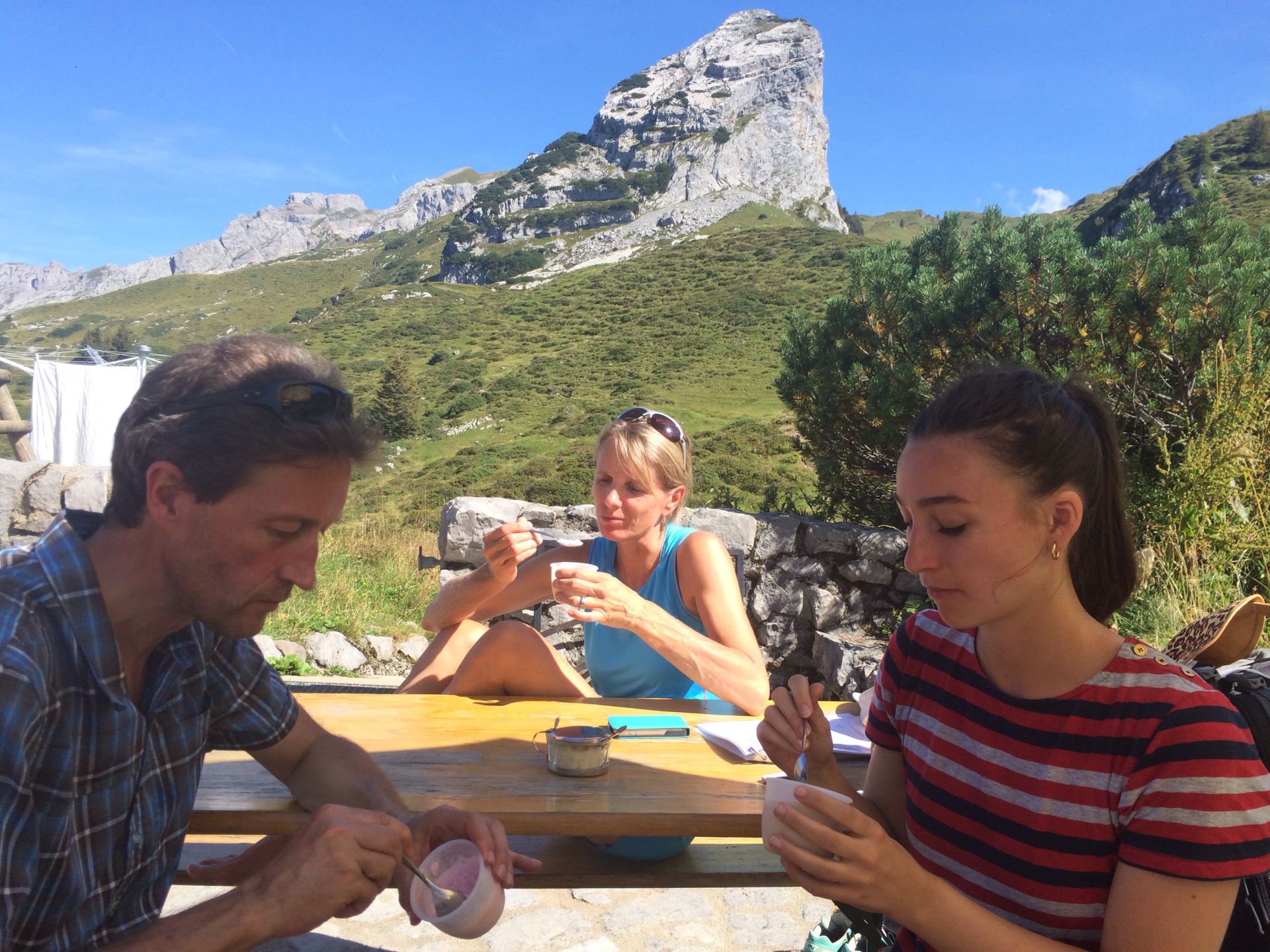 Zurück in der Lidernenhütte will Arno die Vollwertküche prüfen, derweil wir andern zunächst nur trinken wollen. Im Angesicht seiner Magronen mit Baumnusspesto verlangen wir dann schnell zusätzliche Gabeln… sehr fein! Wir runden den Genuss mit hausgemachter Glace ab und machen uns mehr als zufrieden auf den Heimweg.