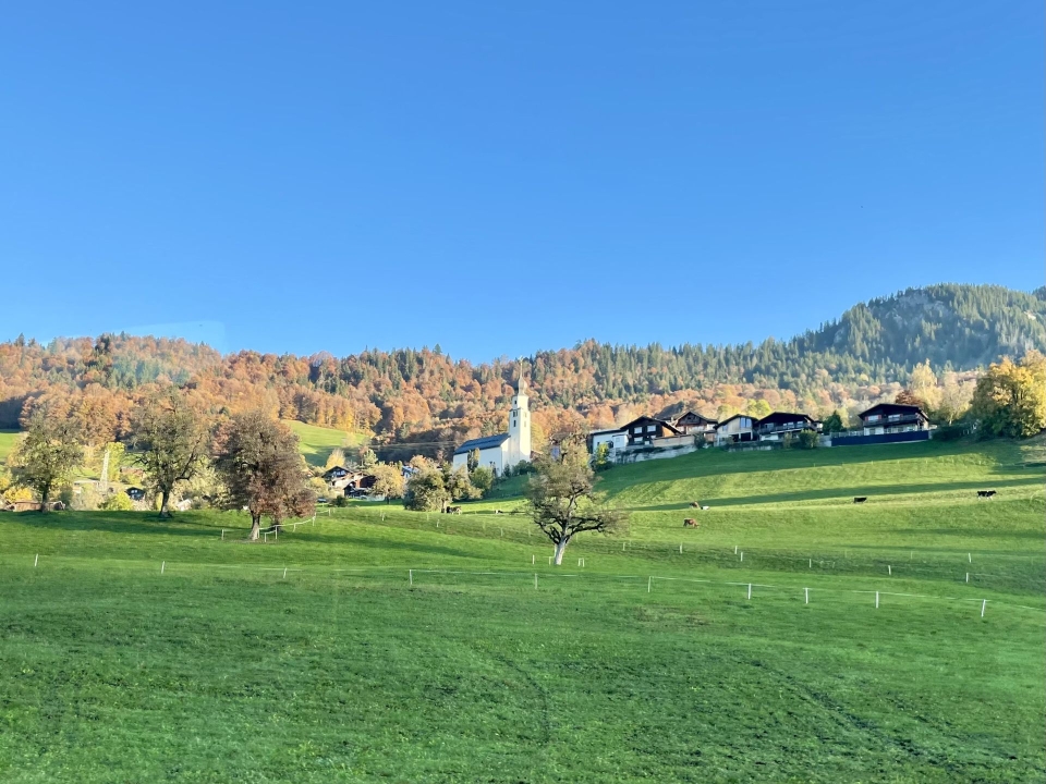 Die Aussicht auf einen herrlichen Herbsttag im Rätikon ist wesentlich anziehender als mein Pflichtgefühl, den Tag im Büro zu verbringen. So steige ich um halb Neun anstatt in eine Videokonferenz in den Kleinbus von Schiers nach Fanas. In diesem malerischen Dorf, das am Hang hoch über dem Talboden des Prättigaus klebt, besteige ich das in die Jahre gekommene Eggli-Bähnli. Das Kabinchen hievt mich in einer knappen Viertelstunde gemächlich auf das Eggli (1700m), wo meine Tour beginnt.