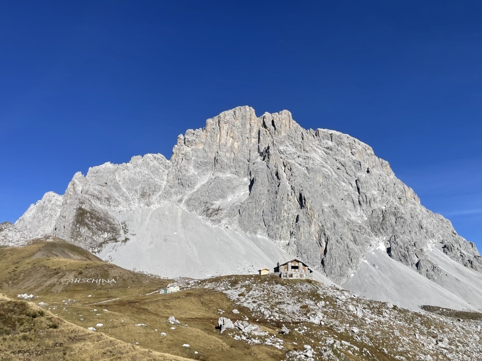 Schliesslich erreiche ich den Pass, auf dem die Carschinahütte liegt. Sie ist schon seit einer Woche „eingewintert“. So habe ich die schöne Terrasse für mich alleine und geniesse meinen letzten Ovo-Riegel und leere die Reste der dritten Wasserflasche. Ich nehme mein iPhone hervor und schaue nach, wo die Trottis von Partnun bereitstehen. Aber oje! Sie stehen leider nirgends mehr… ich bin einen Tag zu spät! Saisonende war gestern, am 20. Oktober ….