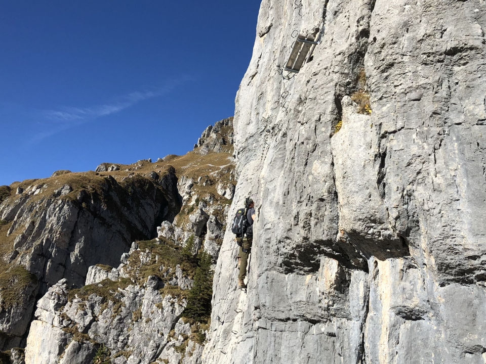 Die Gedanken verflüchtigen sich bald und ich erlabe mich wieder am Panorama des Reuss- und Schächentals. Dann erinnere ich mich an den kurzen Fruttastäg-Klettersteig gleich über mir. Als ich mit zusammengekniffenen Augen das Bänklein in der Wand erspähe, denke ich dankbar an die spektakuläre Genusskletterei mit Thomas zurück. Aber für heute ist jetzt genug!