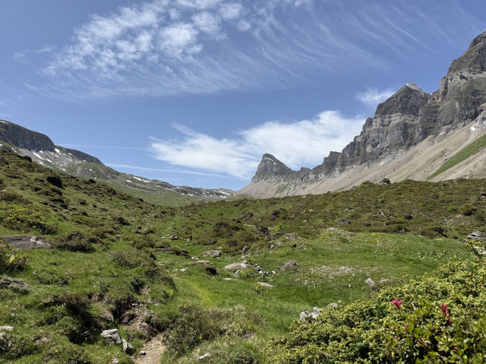 Der lange Talgrund, hier geht’s dann rechts hoch zur Seenalp
